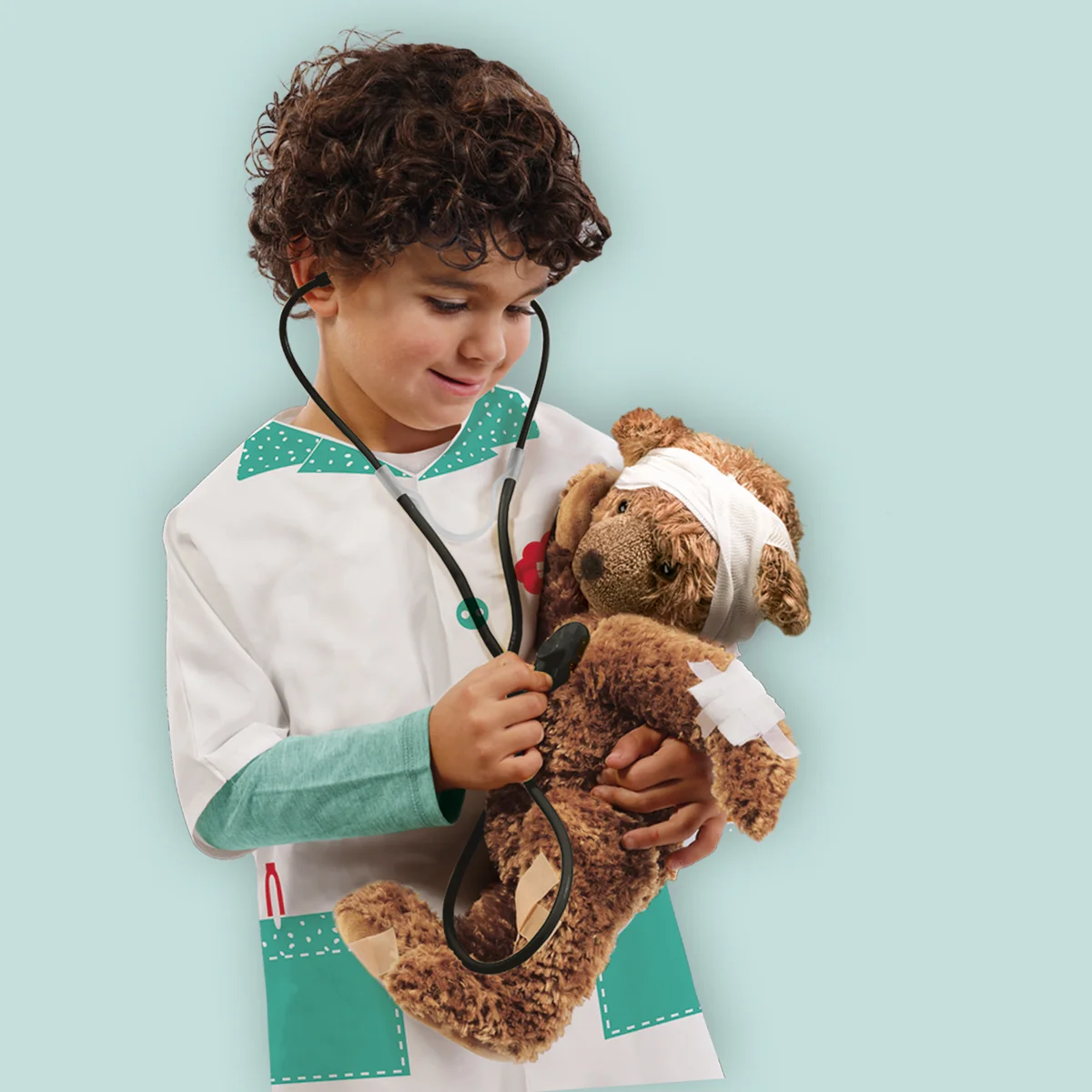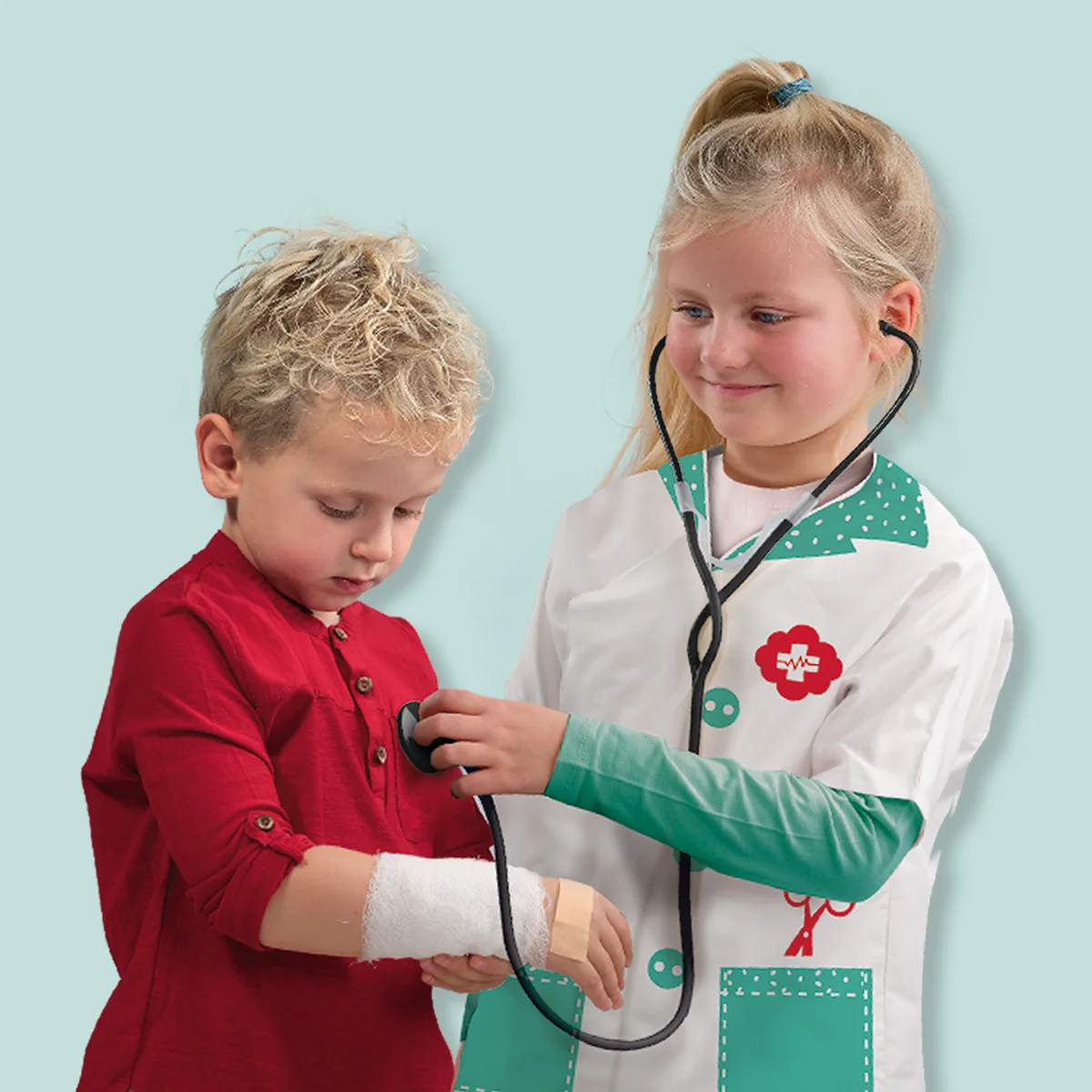 Skutečný lékař u sebe přirozeně nosí stetoskop. Poslouchejte srdeční tep svých pacientů s tímto funkčním stetoskopem z kolekce Petits Pretenders. Váš přítel si také může poslechnout vaše srdíčko. Kdo má nejvyšší tepovou frekvenci? Je také skvělým doplňkem k ostatním lékařským produktům z kolekce Petits Pretenders. Špunty do uší se snadno čistí. Stimuluje fantazii a kreativitu prostřednictvím hry. Baleno v krabičce. Rozměry balení: 20 x 15 x 4 cm. Věk: 3+