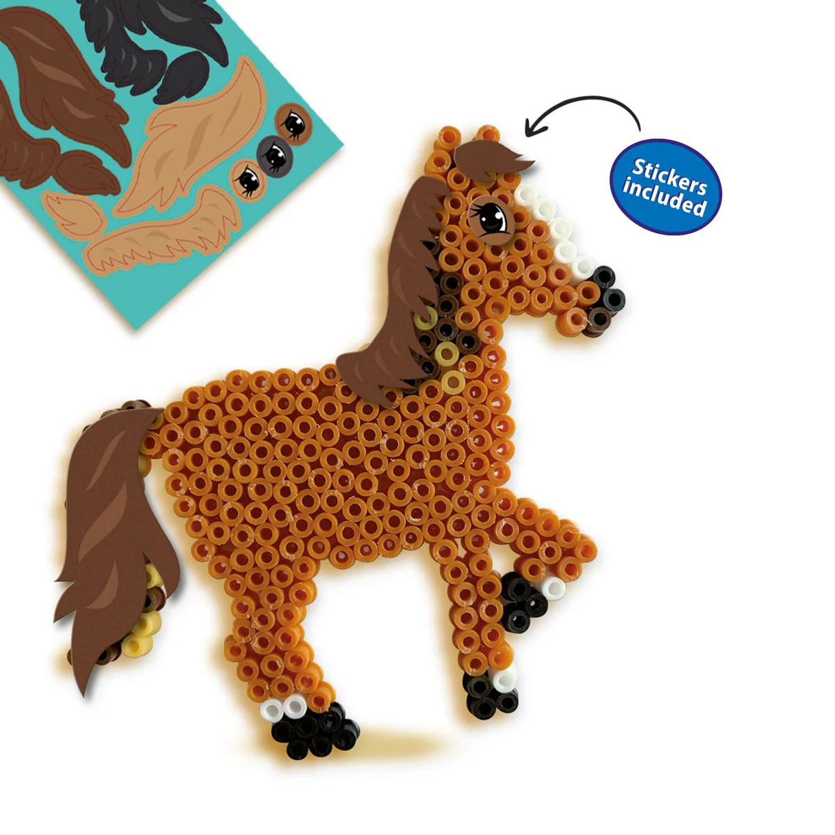 Prozkoumejte kreativitu se sadou korálků Koně – nádhernou zažehlovací sadou korálků pro děti, které milují koně a umělecké projekty. Sada obsahuje 1200 ks zažehlovacích korálků, podložku ve tvaru koně, sadu samolepek a zažehlovací papír. Tato dětská řemeslná sada pomáhá rozvíjet jemnou motoriku, trpělivost a kreativitu, když děti aranžují korálky a vytvářejí realistické vzory koní. Korálky neobsahují PVC. Baleno v krabičce. Rozměry balení: 20 x 15 x 4 cm. Nevhodné pro děti do 3 let. Věk: 5+