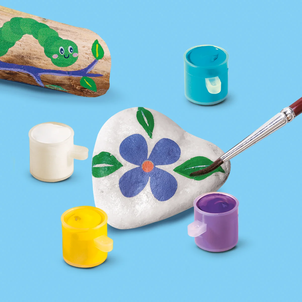 Malování kamínků a naplavených klacíků – vytvořte si vlastní přírodní umělecká díla. Tato kreativní sada, inspirovaná přírodou, obsahuje vše, co potřebujete k zdobení kamenů a dřívek barvami. Ideální pro kreativní děti, které rády tvoří z přírodních materiálů. Obsah sady: 3 bílé kameny, směs naplaveného dřeva, 6 barviček, štětec, samolepky a návod. Podporuje rozvoj dětské fantazie, jemné motoriky a smyslu pro umění. Baleno v krabičce. Rozměry balení: 20 x 20 x 4 cm. Nevhodné pro děti do 3 let. Věk: 5+