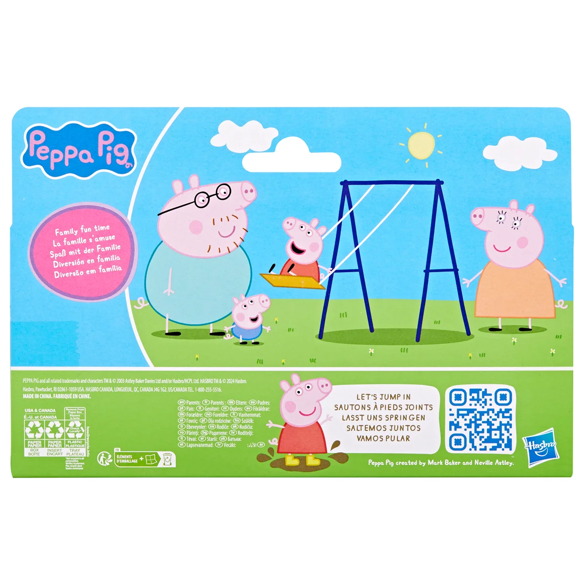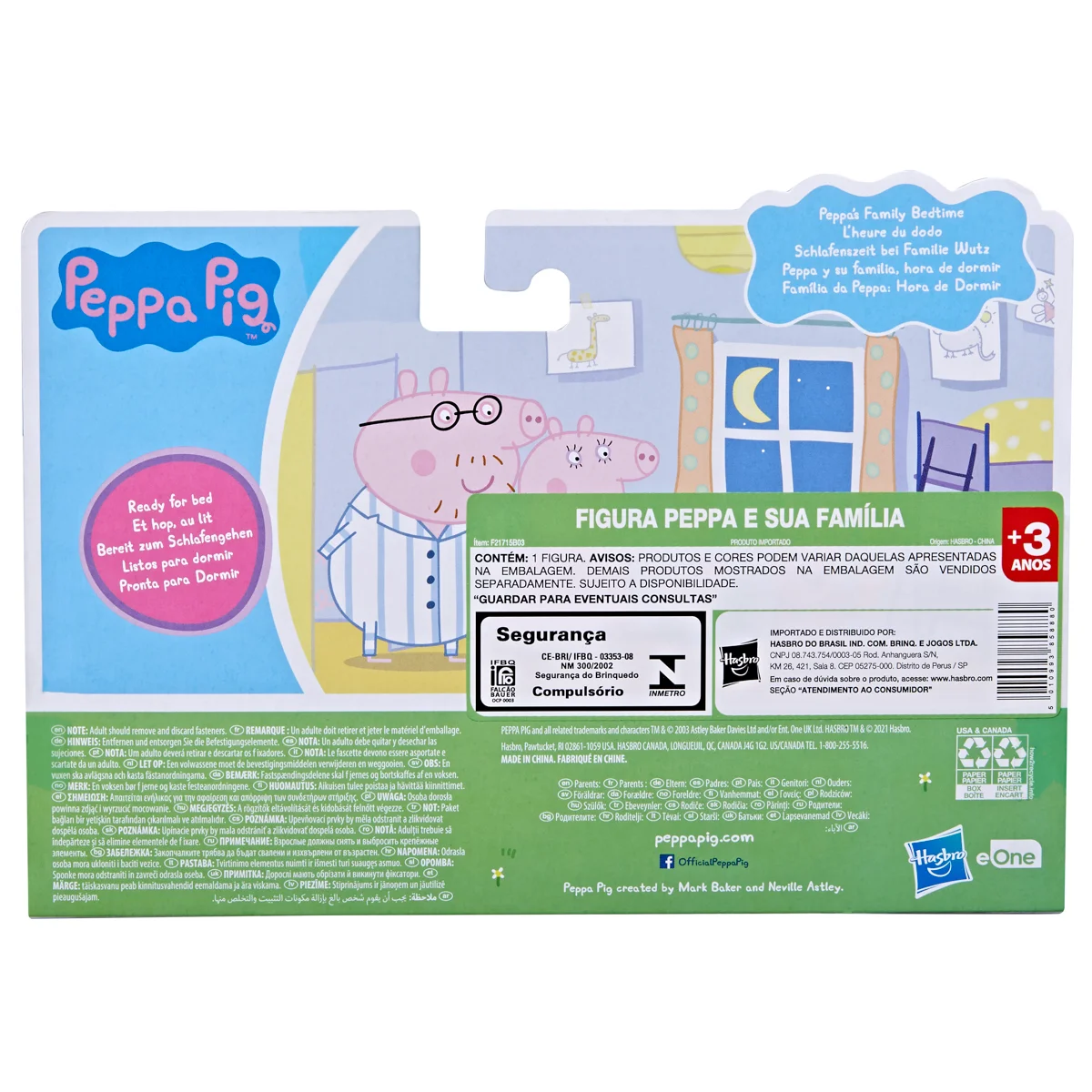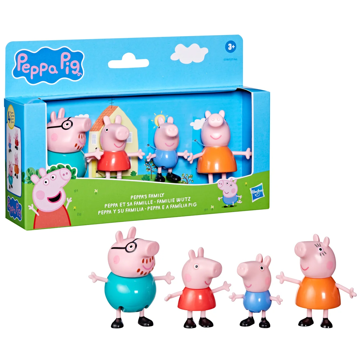 Sada figurek – Prasátko Peppa a jeho rodina. Děti si mohou přehrávat scény ze seriálu nebo vymýšlet nová vlastní dobrodružství se 4 pózujícími figurkami. Tato sada figurek je úžasnou hračkou pro děti, které milují tento seriál. Kolekce 3 druhů. Assort je náhodný mix modelů. Výběr nelze ovlivnit. Každé balení obsahuje 8 cm vysoké figurky maminky, tatínka, Peppy a Toma. Kolekce 3 témat obsahuje sady – Klasická sada, Deštivý den, Čas jít spát nebo Rodinná oslava. Rozměry balení: 25 x 24 x 11 cm. Věk: 3+