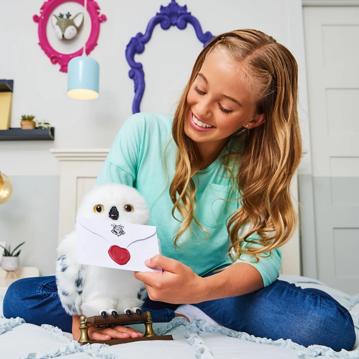 Interaktivní sova Hedvika umí otáčet hlavou až o 270°, mávat křídly a má hebounké peří. Dokáže rozeznat, jakým tónem hlasu na ni promluvíš a takovým tónem Ti i odpoví. Dej Hedvice obálku se zprávou, bude reagovat a vezme si ji do zobáku. Součástí balení jsou 3xAA baterie. Velikost 30cm. Rozměr balení: 25,4x30,5x20,3 cm. Věk 5+