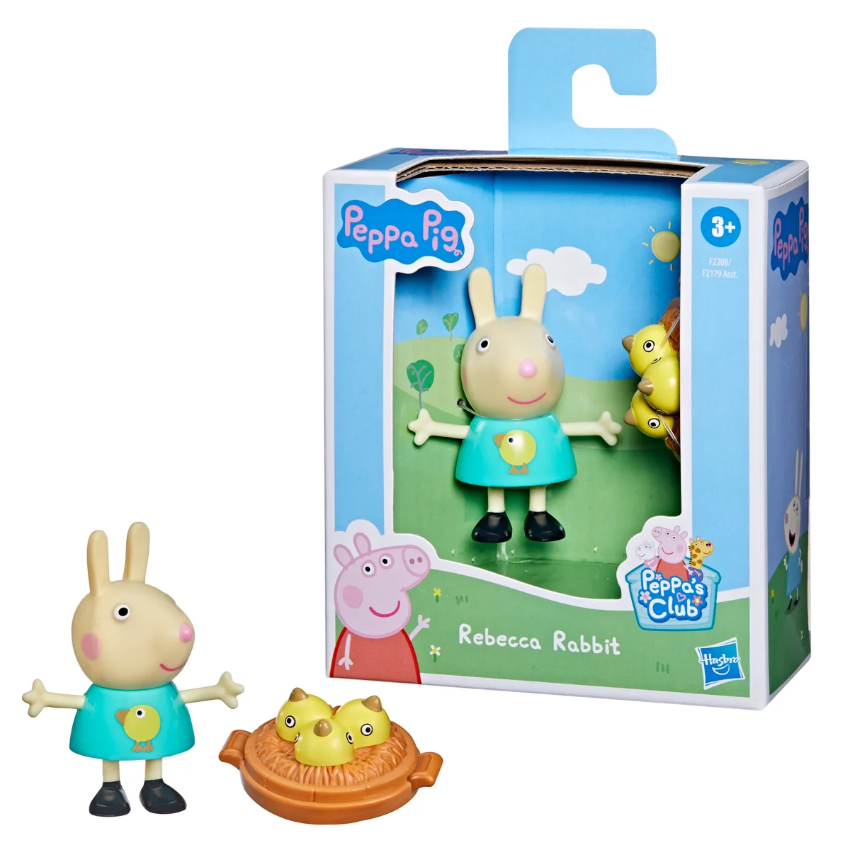 Králík Rebecca figurka s příslušenstvím z kolekce Peppa’s Adventures. Děti si mohou přehrávat scény ze seriálu nebo vymýšlet nová vlastní dobrodružství s figurkou a tematickým doplňkem. Tato figurka králíka Rebecca má na sobě zelené šaty. Jejím doplňkem je hnízdo s ptačími mláďaty. Kolekce obsahuje několik druhů, posbírejte je všechny. Výška figurky je 8 cm. Rozměry balení: 16,2 x 11,1 x 5,1 cm. Věk: 3+