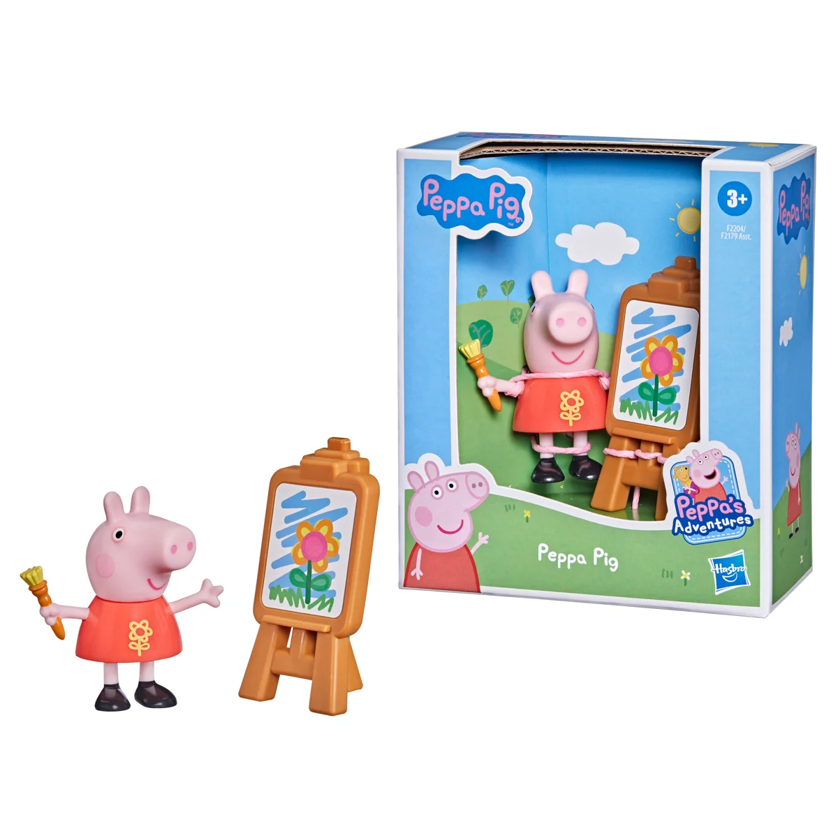 Prasátko Peppa Pig figurka s příslušenstvím z kolekce Peppa’s Adventures. Děti si mohou přehrávat scény ze seriálu nebo vymýšlet nová vlastní dobrodružství s figurkou a tematickým doplňkem. Tato figurka Peppa je ve speciální verzi, jejích ikonických červených šatech se štětcem v ruce. Jejím doplňkem je malířský stojan, který zobrazuje její nejnovější mistrovské dílo. Kolekce obsahuje několik druhů, posbírejte je všechny. Výška figurky je 8 cm. Rozměry balení: 16,2 x 11,1 x 5,1 cm. Věk:3+
