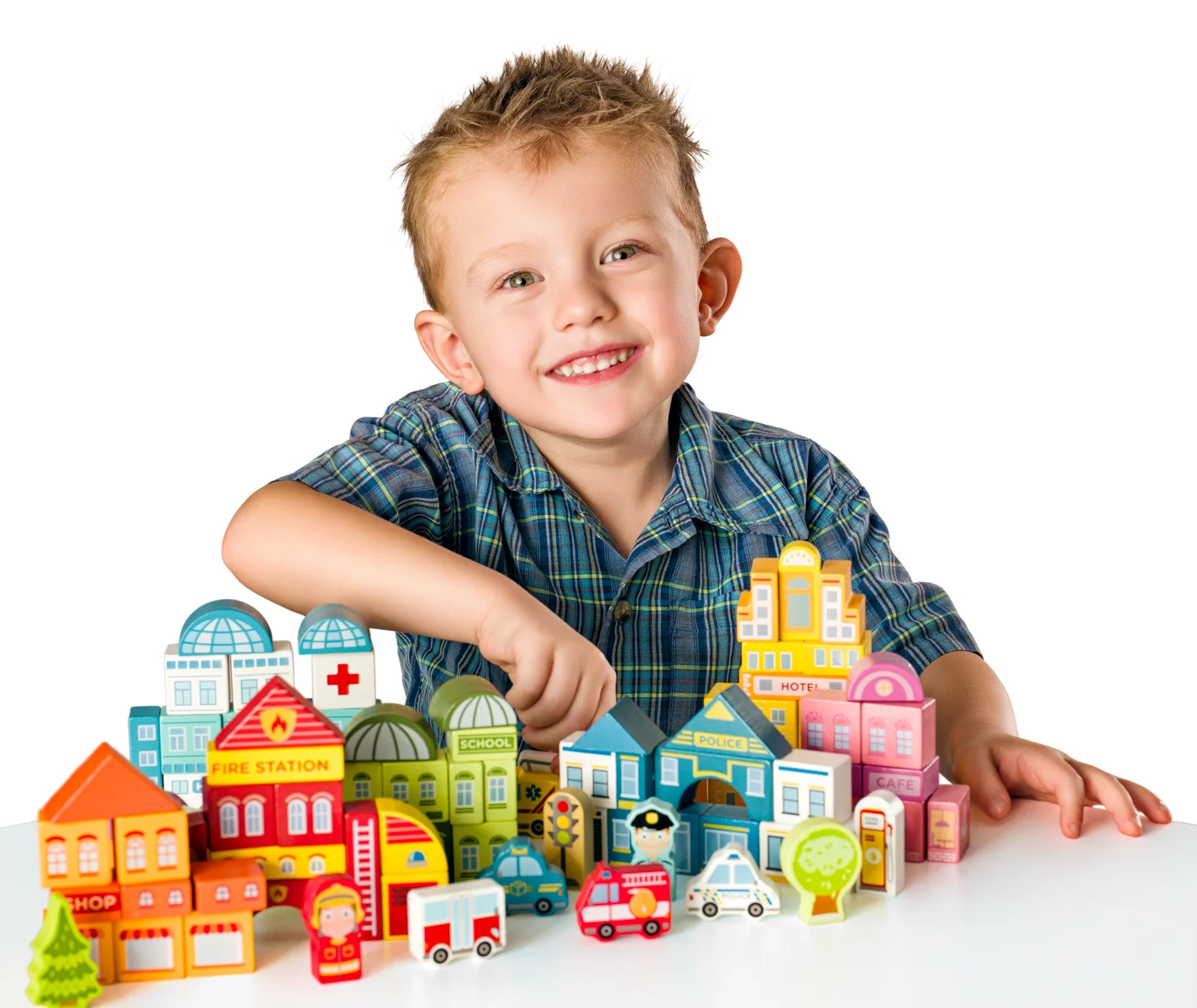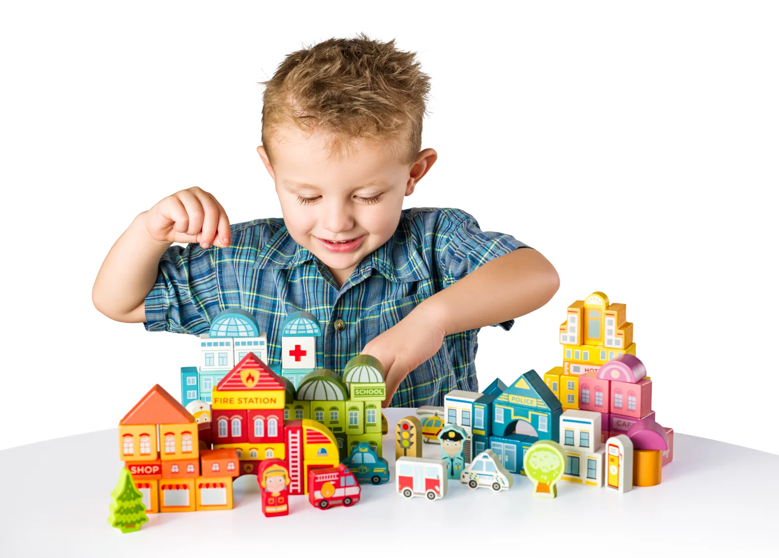 Otevři kyblík plný barevných dřevěných kostek v jedinečném designu české výtvarnice a postav si vlastní město plné života! Vytvoř požární a policejní stanici, nemocnici, školu, kavárnu i obchod. Nech ulicemi projíždět auta, vrtulník kroužit nad městem a plnit své úkoly. Podkladová deska z puzzle dílů dotvoří dokonalou scénu pro tvé příběhy!| Věk: 3+ | Rozměr čtvercového dílu: 3x3x2 cm| Kyblík: 22,5 x 22 cm| Počet dílů: 115