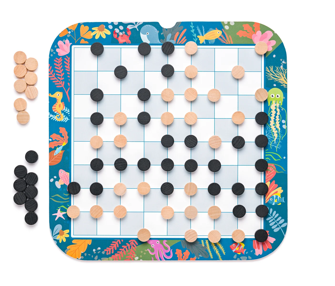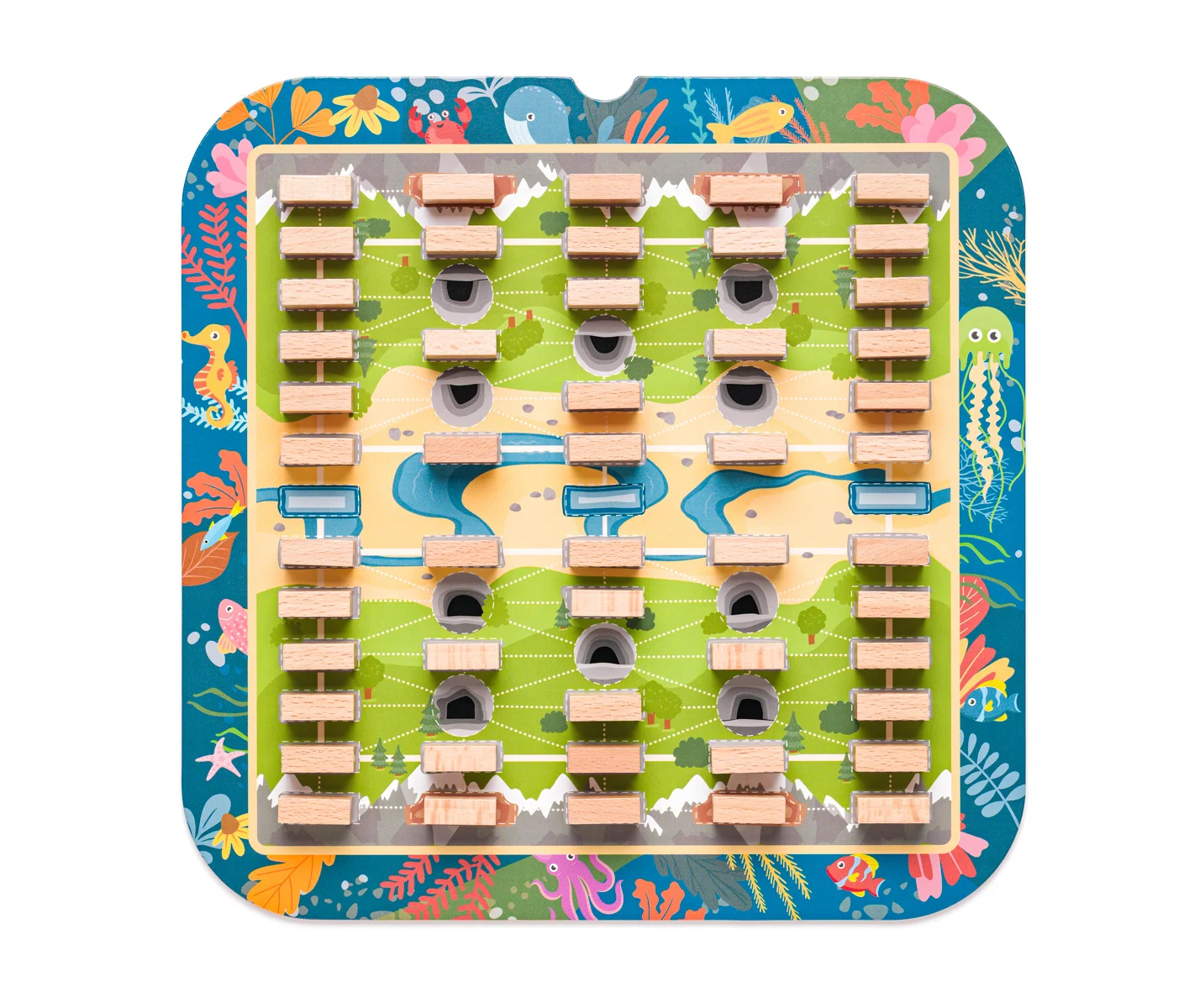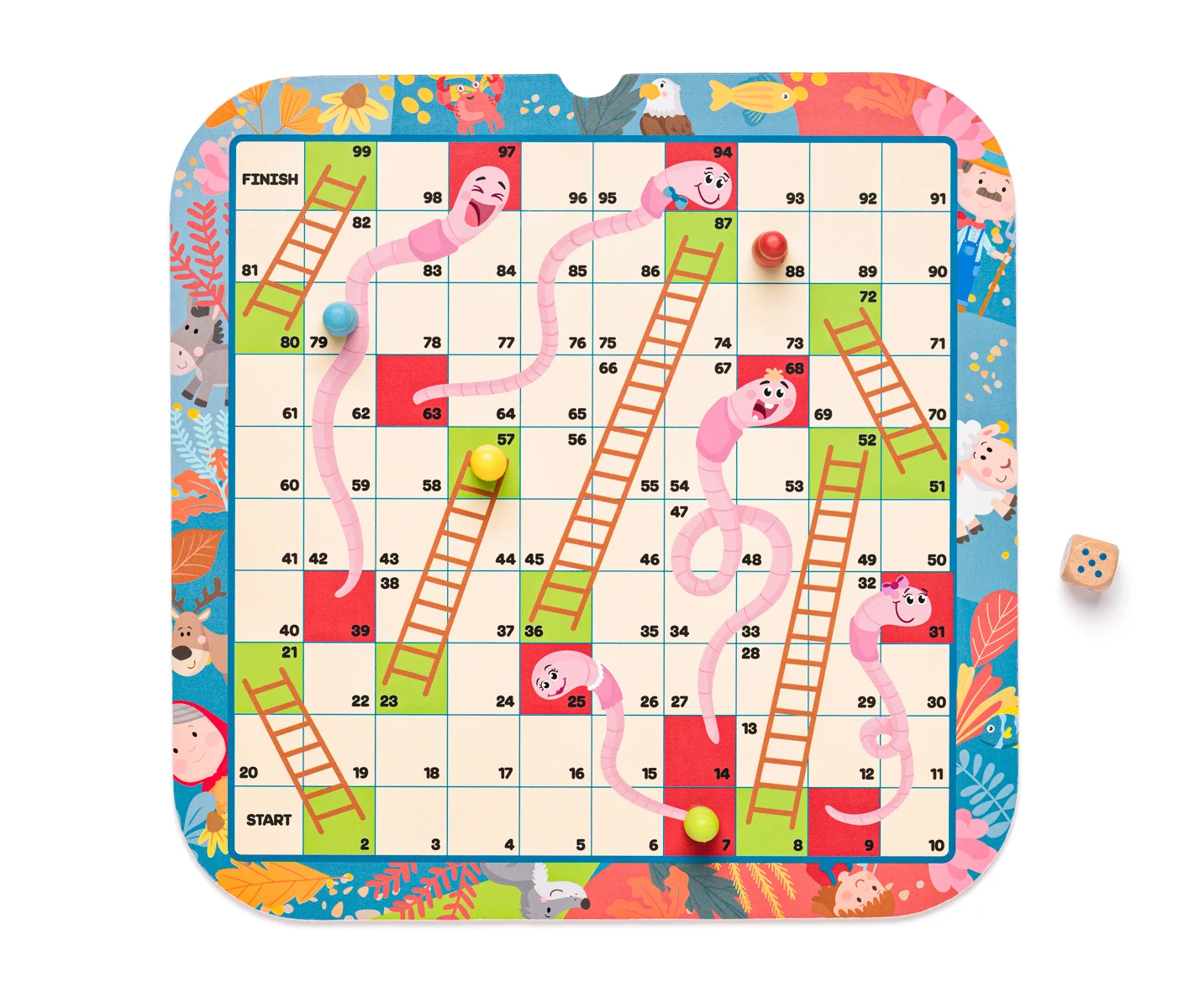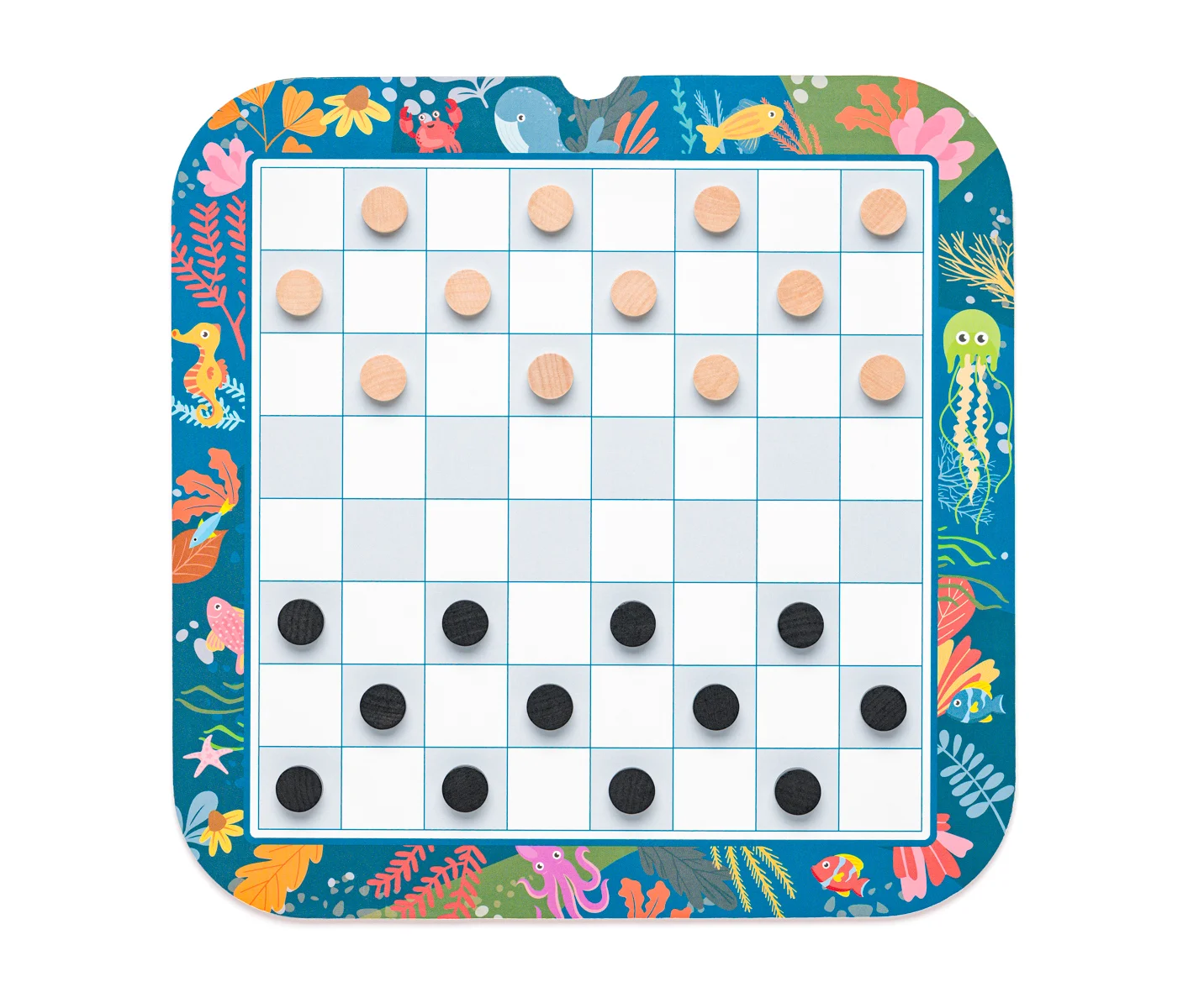 Dřevěný kufřík s tradičními i netradičními společenskými hrami pro děti obsahuje tři oboustranné čtvercové hrací plochy a figurky či hrací kameny k nim určené. Hrací desky jsou opatřeny originálnimi dětskými kresbami od české výtvarnice. Soubor obsahuje hry: Člověče, buď ve střehu (zábavnější a napínavější forma hry „Člověče, nezlob se“), Silnější vyhrává (strategická paměťová hra), GO (tradiční čínská strategická hra), dáma, čínská dáma (není Dáma, má velmi zavádějící název, nepochází z Číny a s Dámou nemá také v podstatě nic společného), kolíčkové pexeso (zábavná a jednoduchá hru, která procvičuje jemnou motoriku, rozpoznávání barev, soustředění a paměť), žížaly (klasická hra s kostkou, kdy během chůze po políčkách můžeš využít žebříků jako zkratek, ale běda, když šlápneš na hlavu nezbedné žížale).| Věk: 5+| Rozměr kufříku: 33 x 33 x6 cm