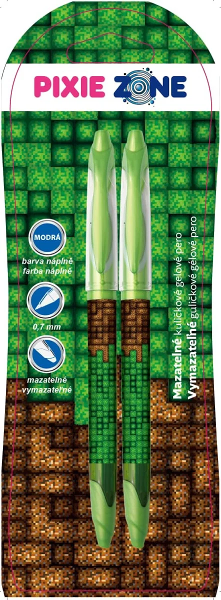 Praktické a moderní mazací pera PX-01-73AH z kolekce PIXIE ZONE přinášejí skvělé řešení pro všechny, kdo si rádi zapisují čistě a bez chyb. Balení obsahuje dvě pera s designem zeleno-hnědých kostek, které evokují oblíbený pixelový herní svět, avšak nejde o oficiální licenci. Tato pera využívají inovativní termosenzitivní inkoust, který lze jednoduše vygumovat pomocí speciálního gumovacího zakončení na konci pera. Stačí přejít přes napsaný text a inkoust zmizí – bez poškození papíru a bez potřeby škrtání. Můžete okamžitě pokračovat v psaní, klidně i stejným perem. Mazací pera jsou ideální pro školní výuku, domácí přípravu nebo pracovní poznámky – zkrátka všude tam, kde záleží na čistém a upraveném zápisu. Rozměry balení: 20 x 7 x 1,5 cm. Věk: 5+