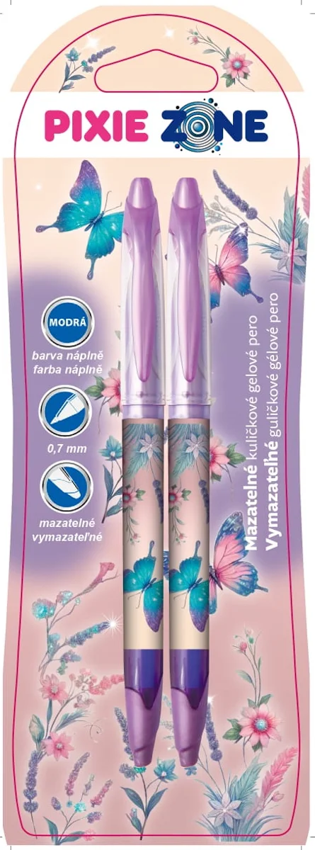 Objevte kouzlo čistého psaní bez chyb s mazacími pery PX-01-36AH z kolekce PIXIE ZONE. Tato elegantní pera s motivem barevných motýlků potěší nejen svou hravostí, ale i praktičností. Balení obsahuje dvě pera, která využívají pokročilou technologii termosenzitivního inkoustu. Jakmile se dopustíte chyby, jednoduše použijete gumovací zakončení pera a inkoust beze stopy zmizí – bez poškození stránky nebo nutnosti škrtat. Můžete psát dál a klidně stejným perem. To vše okamžitě, bez čekání na zaschnutí. Mazací pera jsou ideálním pomocníkem při výuce, domácím psaní i práci – zkrátka všude tam, kde záleží na čistotě a upravenosti zápisů. Stylový motiv motýlků zaručí, že pera nejen dobře fungují, ale i skvěle vypadají. Rozměry balení: 20 x 7 x 1,5 cm. Věk: 5+