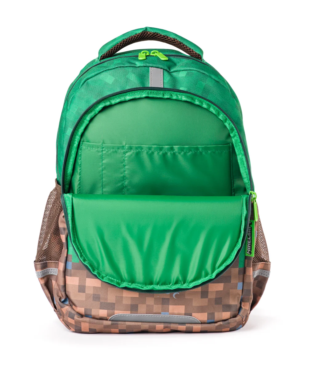 VícePředstavujeme školní batoh PXB-14-35 s oficiální Minecraft licencí, který potěší každého malého fanouška pixelového světa! Tento batoh spojuje funkčnost, pohodlí a styl v designu, který si děti zamilují. Ideální pro první stupeň základní školy – navržený s ohledem na zdraví a bezpečnost. Batoh váží pouhých 650 gramů, což zajišťuje maximální komfort i při každodenním nošení. Díky ergonomicky tvarovaným zádům a odlehčené konstrukci podporuje správné držení těla a snižuje zátěž na dětskou páteř. 360° reflexní prvky umístěné po celém obvodu zajišťují, že dítě bude dobře viditelné i za zhoršených světelných podmínek. Uvnitř najdete dvě prostorné komory se zapínáním na zip, přičemž hlavní komora je doplněna o praktickou kapsu pro školní složky. Boční kapsy jsou ideální na láhev s pitím nebo drobnosti, které je třeba mít vždy po ruce. Minecraft motiv přináší zábavný prvek, který dětem přibližuje oblíbenou hru i ve školních lavicích. Tento batoh je součástí kreativního světa PIXIE CREW. Hlavní hravý prvek představuje PIXIE CREW silikonový panel, na který si mohou děti pomocí barevných pixelových dílků tvořit vlastní motivy, jména nebo symboly. Rozměry produktu: 39 x 29 x 13 cm. Rozměry balení: 40 x 30 x 15 cm. Věk: 5+