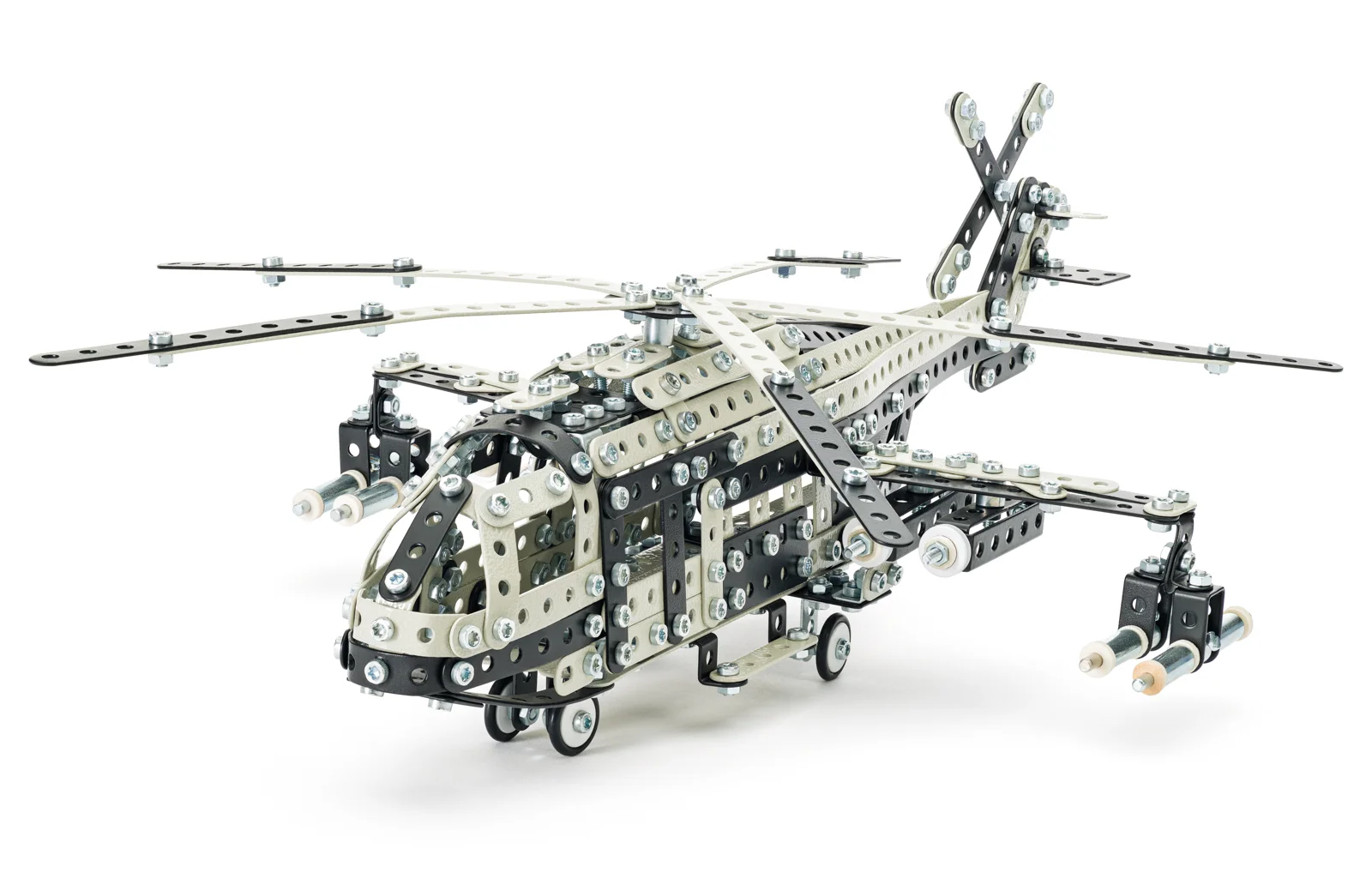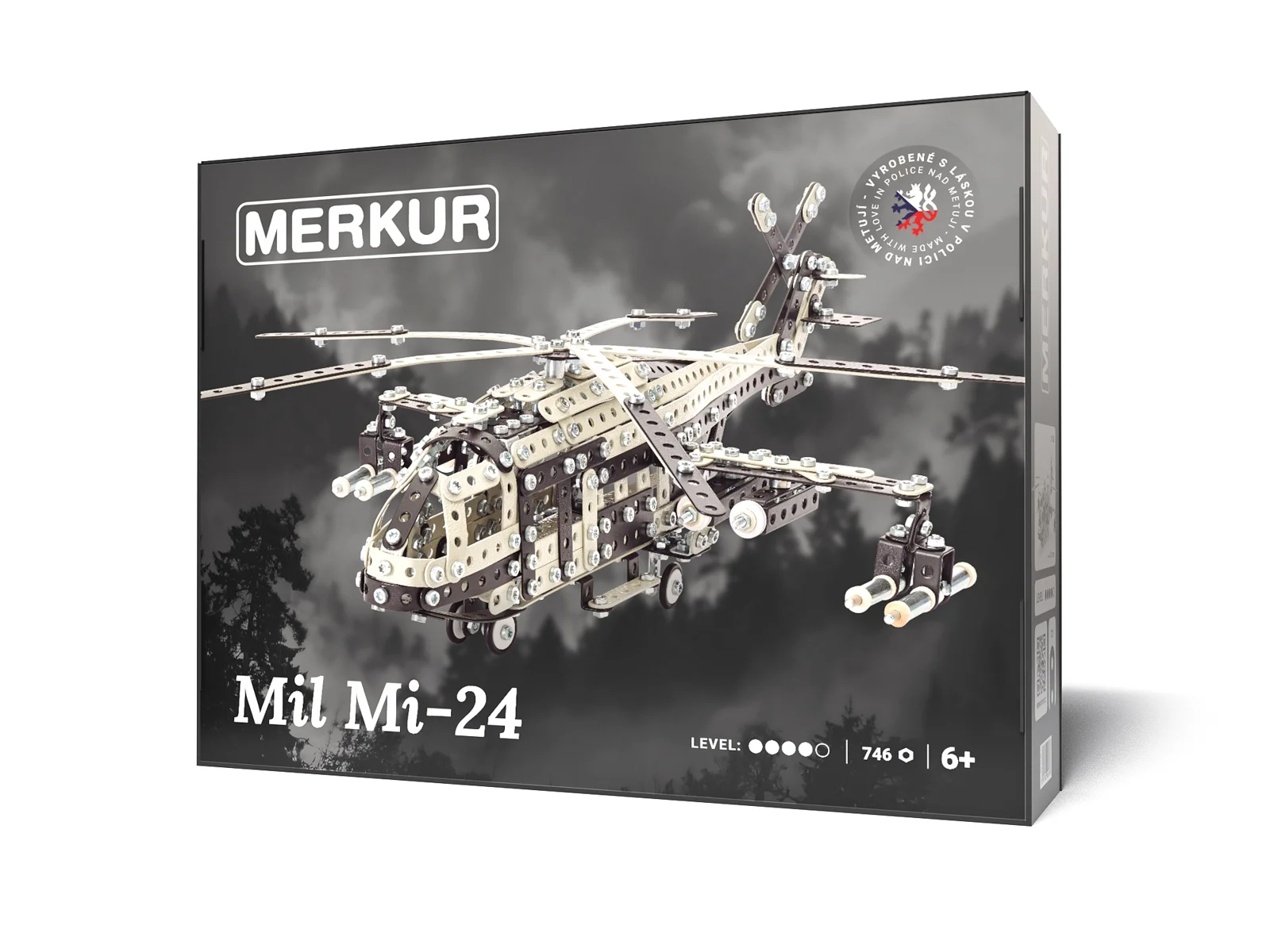 Ponořte se do světa kreativity a zábavy se stavebnicí Vrtulník Mil Mi-24 k oslavě výročí 100 let stavebnice Merkur. Tato jedinečná sada je ideálním nástrojem pro rozvoj technických dovedností a představivosti dětí. Díky kovovým dílkům si malí stavitelé mohou postavit bitevní vrtulník Mil Mi-24. Stavebnice obsahuje kvalitní kovové díly, které se snadno spojují šroubky, což podporuje rozvoj jemné motoriky, logického myšlení a soustředění. Sada obsahuje: 746 dílků. Úroveň Merkur obtížnosti: 4. Baleno v krabičce. Rozměry vrtulníku: 13,5 x 38 x 41 cm. Rozměr balení: 27 x 35 x 8 cm. Věk: 6+