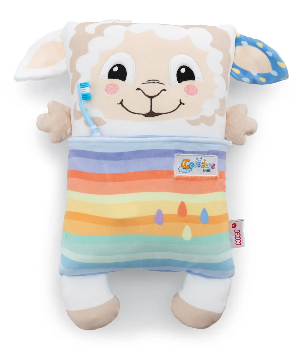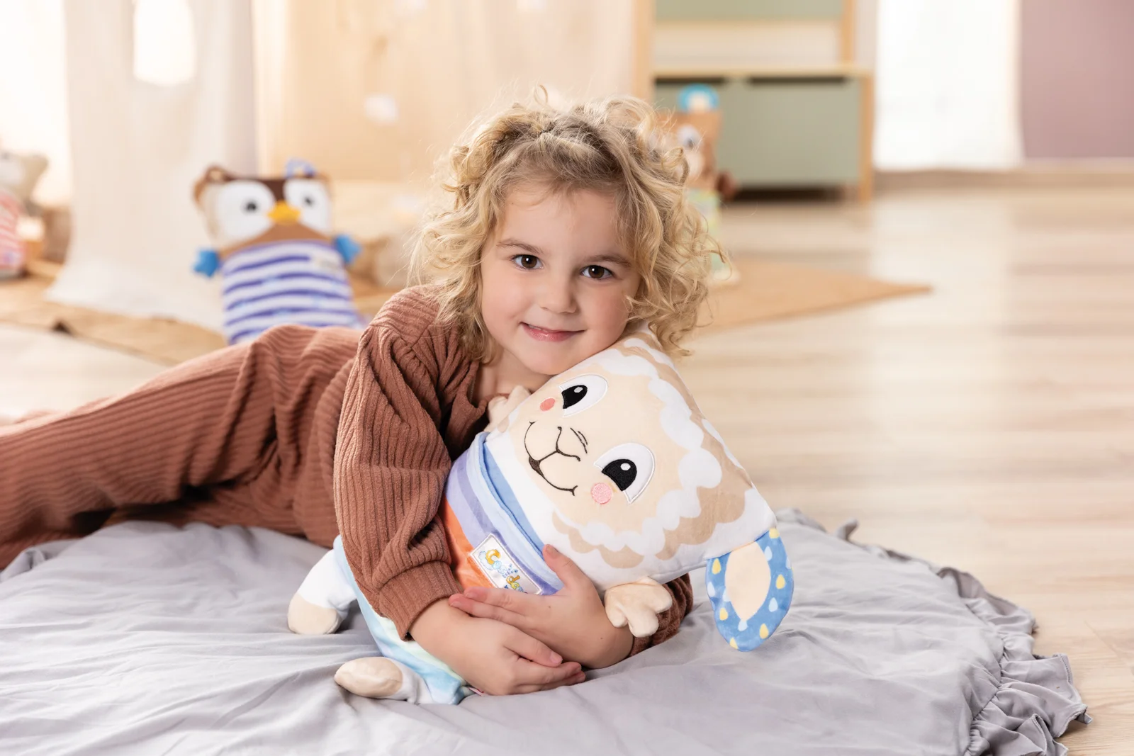 VíceOvečka Cosidoos je nadýchaná plyšová hračka, kterou lze snadno proměnit z veselého denního společníka v uklidňující zvířátko a polštářek na spaní. Roztomilá ovečka kombinuje zábavu při hraní s pocitem pohody a zároveň podporuje pochopení rytmu dne a noci. Díky tomu se stává přechod k večernímu usínání opravdovým zážitkem. Ovečku lze jediným jednoduchým pohybem ruky snadno převrátit a změnit tak barvy i design podle denní doby. Během dne ovečka Cosidoos podporuje kreativní hru a stimuluje fantazii, zatímco v noci se stává něžným společníkem pro klidný noční spánek. Měkké kapsy jsou ideální pro uložení malých pokladů nebo důležitých předmětů. Oboustranný zázrak vyrobený z vysoce kvalitního, super měkkého plyše NICI je víc než jen hračka – je to věrný přítel, který plynule přechází mezi hrou a odpočinkem. Rozměry hračky: 30 x 20 x 11 cm. Věk 12 m+