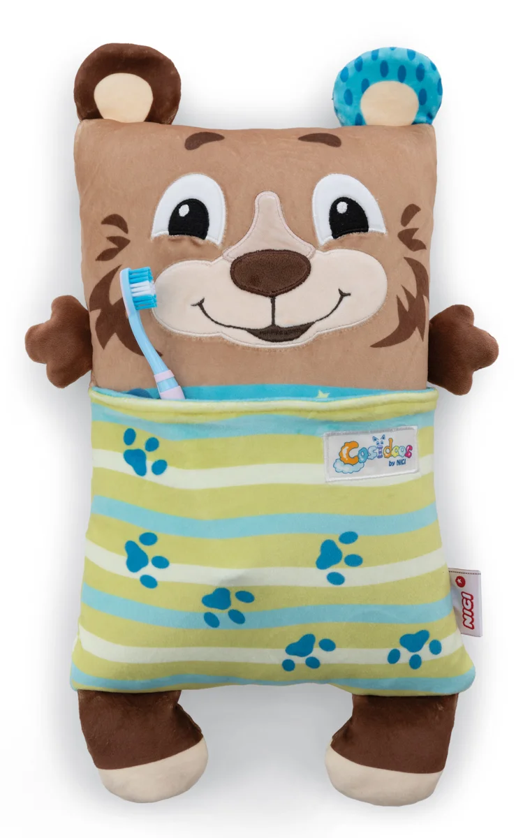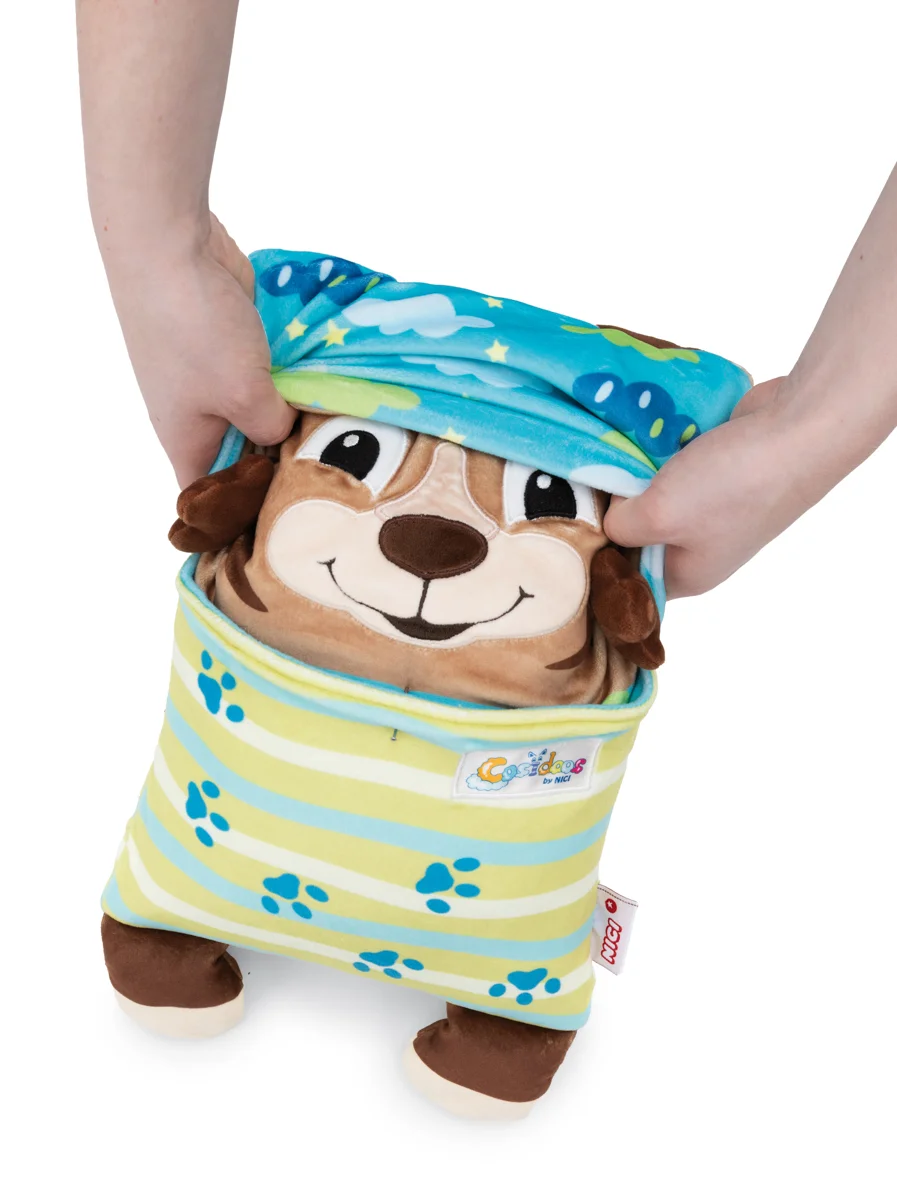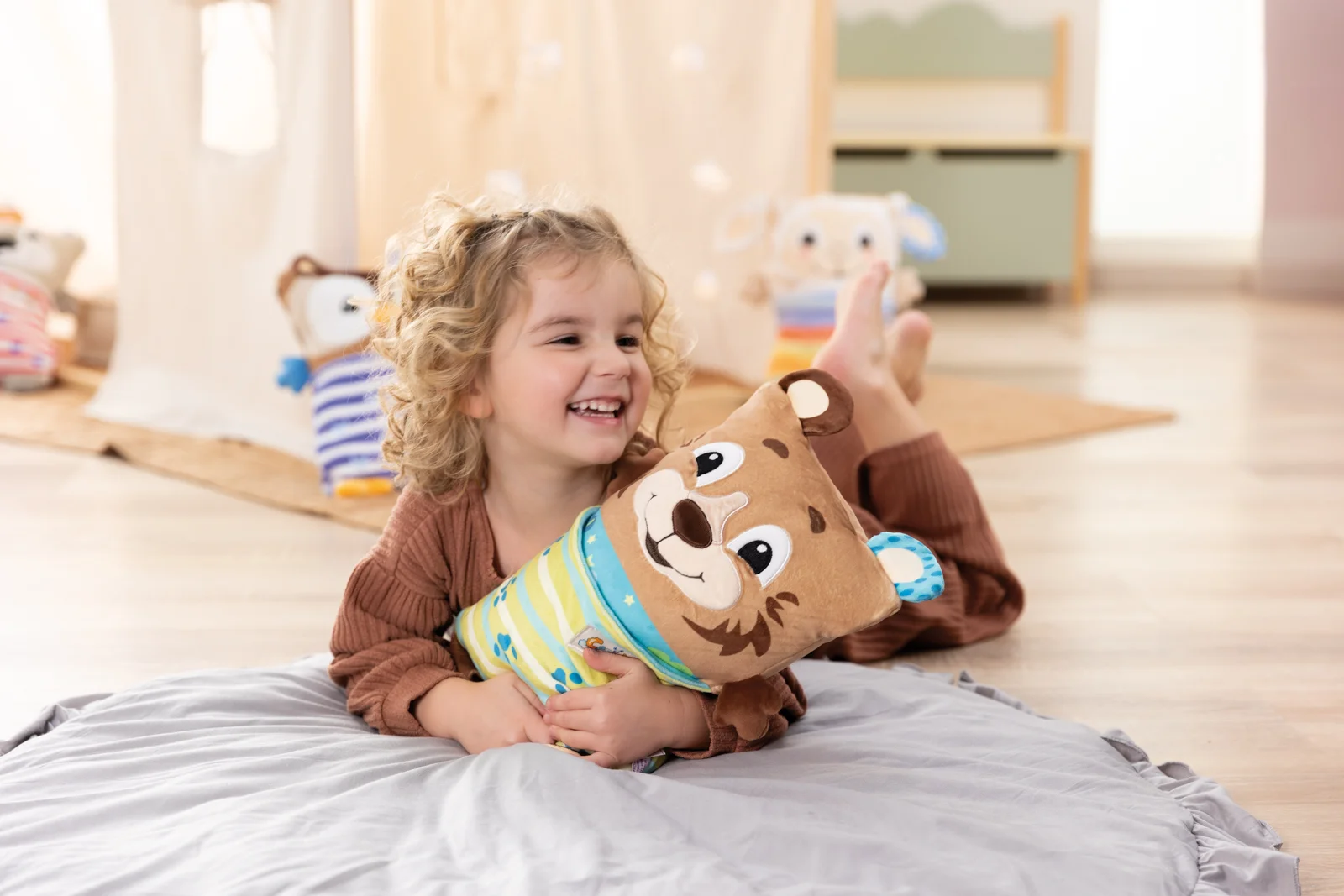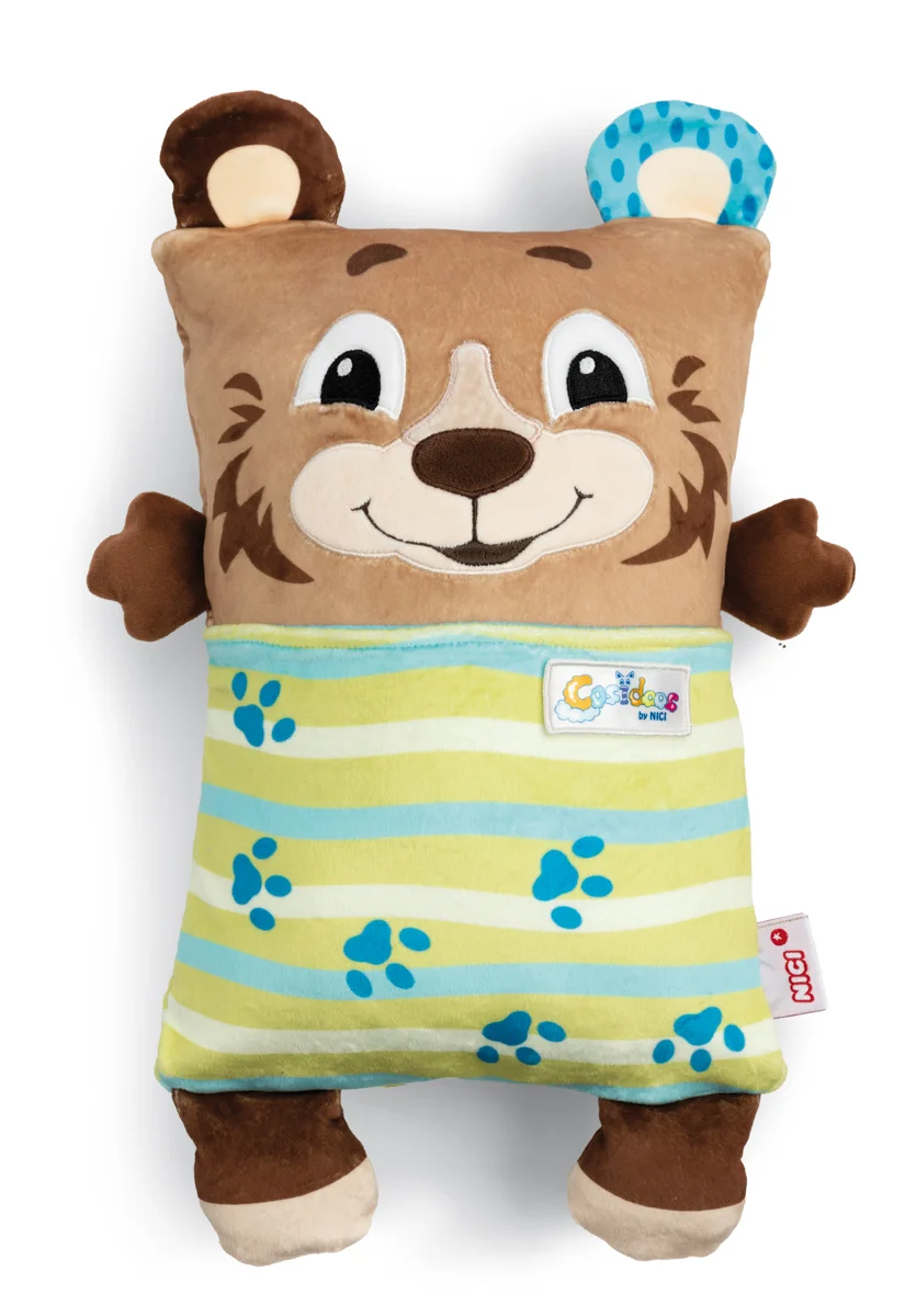VíceMedvídek Cosidoos je nadýchaná plyšová hračka, kterou lze snadno proměnit z veselého denního společníka v uklidňující zvířátko a polštářek na spaní. Roztomilý medvídek kombinuje zábavu při hraní s pocitem pohody a zároveň podporuje pochopení rytmu dne a noci. Díky tomu se stává přechod k večernímu usínání opravdovým zážitkem. Medvídka lze jediným jednoduchým pohybem ruky snadno převrátit a změnit tak barvy i design podle denní doby. Během dne medvídek Cosidoos podporuje kreativní hru a stimuluje fantazii, zatímco v noci se stává něžným společníkem pro klidný noční spánek. Měkké kapsy jsou ideální pro uložení malých pokladů nebo důležitých předmětů. Oboustranný zázrak vyrobený z vysoce kvalitního, super měkkého plyše NICI je víc než jen hračka – je to věrný přítel, který plynule přechází mezi hrou a odpočinkem. Rozměry hračky: 30 x 20 x 11 cm. Věk 12 m+