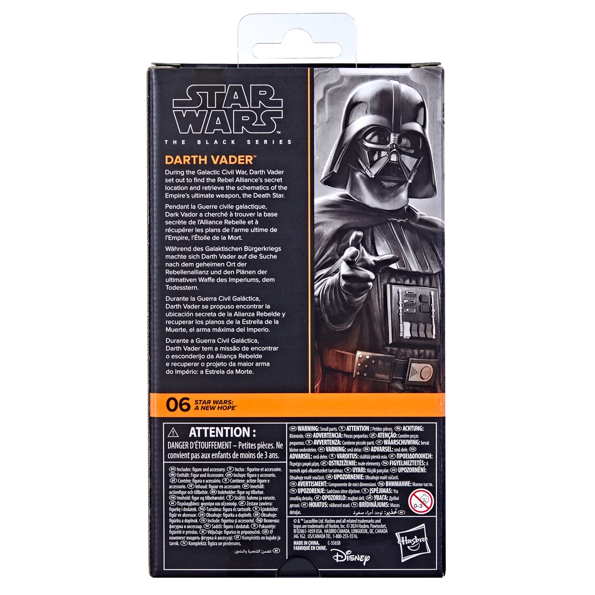 Star Wars The Black Series. Tato akční figurka je inspirována filmem Star Wars: Nová naděje – skvělý dárek pro sběratele a děti od 4 let. Fanoušci a sběratelé Star Wars™ si mohou tuto 15 cm velkou akční figurku s prvotřídními detaily a designem s několika kloubovými body vystavit ve svých sbírkách. Během Galaktické občanské války se Darth Vader vydal najít tajnou lokaci Rebelské aliance a získat schémata ultimátní zbraně Impéria, Hvězdy smrti. Ikonická figurka Darth Vader je dodávána s doplňkem Lightsaber™. Najděte další akční figurky ze série Star Wars Black Series a postavte si celou galaxii na poličku. Baleno v krabičce. Výška figurky: 15 cm. Rozměry balení: 24,8 x 12,7 x 5,1 cm. Věk: 4+