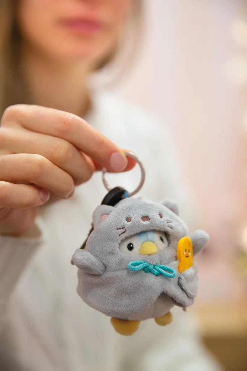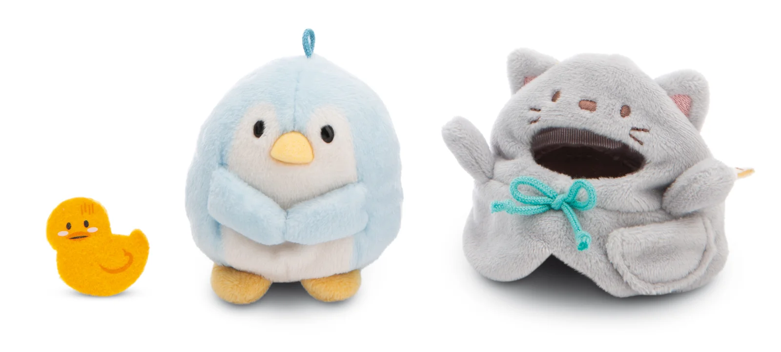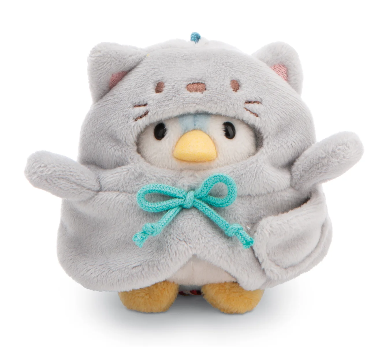 Set soft toy penguin Waddle 8cm with duck and cat costume in gift box 8,5x6,5x10cm