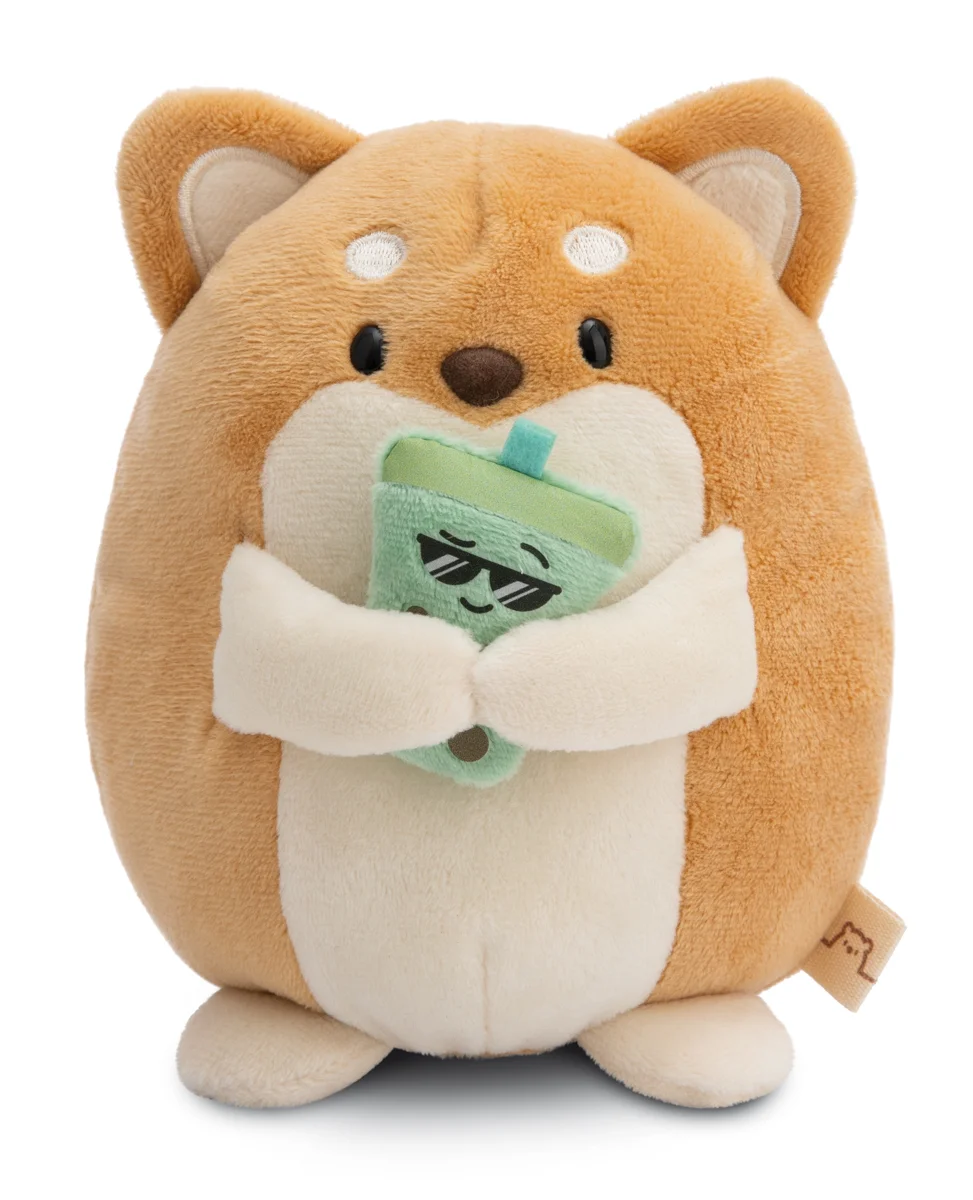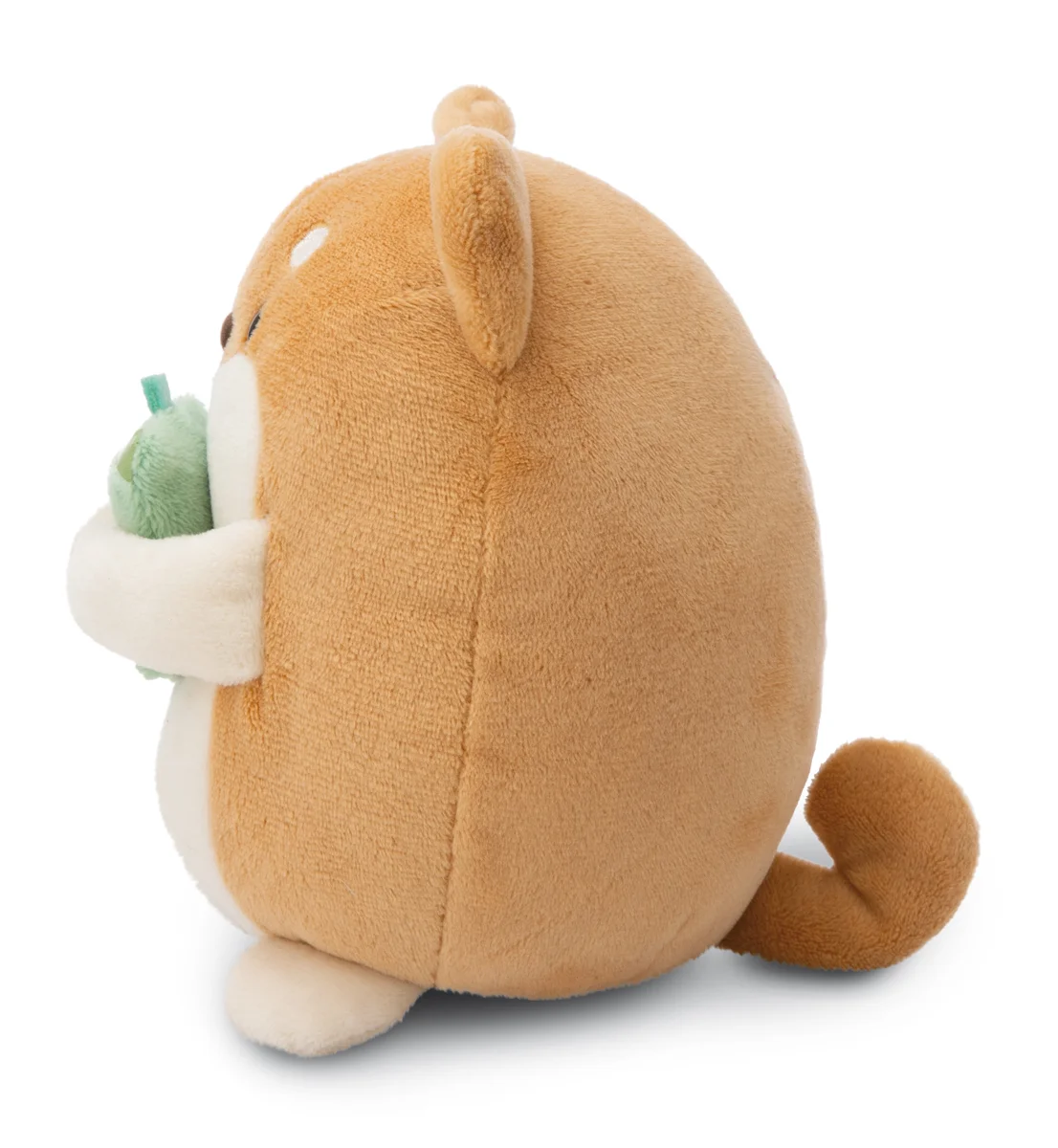 Soft toy dog Hiro 16cm with bubble tea in gift box 11x12x6,5cm