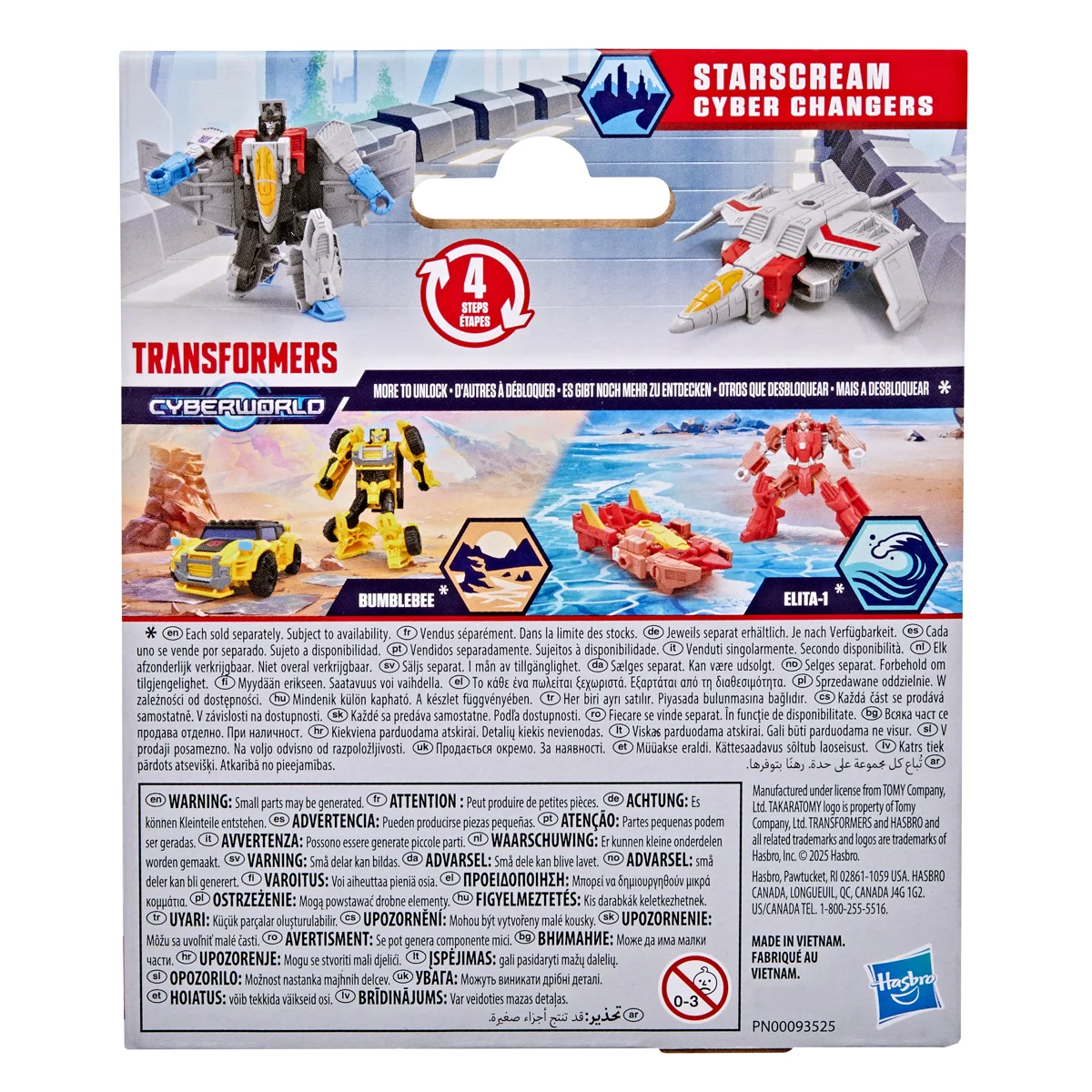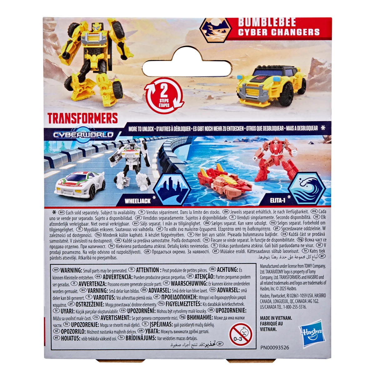 VíceTransformers Cyberworld: Cyber Changers přináší roboty v přestrojení do zcela nové úrovně boje! Staří známí, oblíbené postavy i Autoboti (a Decepticoni), kteří možná vypadají trochu povědomě, se vracejí do akce. Jsou to nová kola? Měl dřív rohy? Kdo vyhraje? To zjistíte s těmito parádními figurkami. Tyto 10 cm vysoké postavičky se snadno promění z robota na alternativní mód vozidla ve 4 krocích. Figurky v kolekci: Optimus Prime, Bumblebee, Megatron, Starscream, Wheeljack, Elita-1 a Sky-Byte. Assort je náhodný mix modelů. Výběr nelze ovlivnit. Vyrobeno z kvalitního plastu. Rozměry balení: 15,08 x 12,7 x 4,9 cm. Věk: 6+