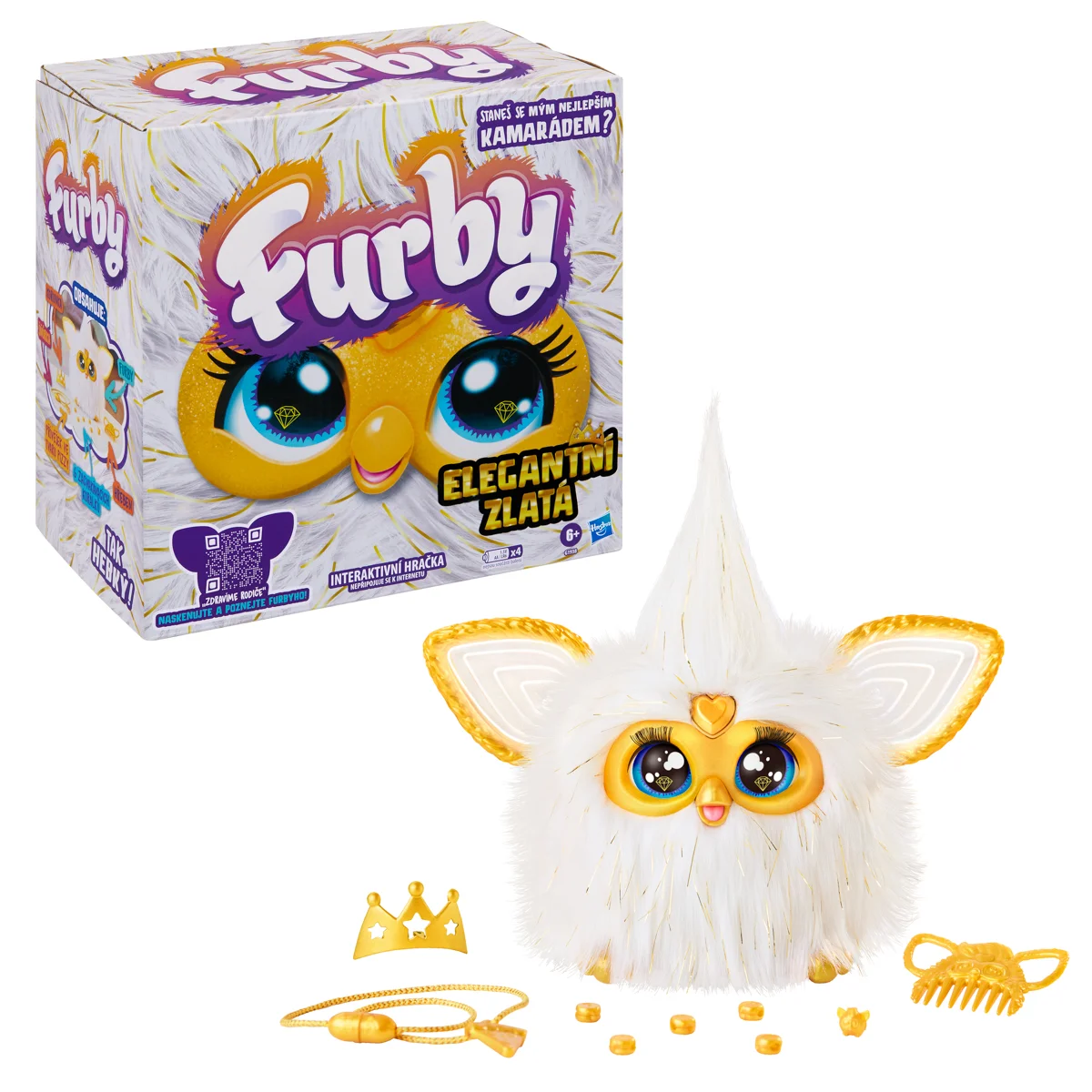 Rozkošný Furby Gold Glam se pyšní bílou srstí se zlatými doplňky. Toto zvídavé malé stvoření je interaktivní hračka s 5 hlasovými režimy a více než 600 frázemi, vtipy, písničkami a spoustou dalších funkcí, které můžete objevovat. Řekněte Furbymu, co chcete dělat, pomocí těchto 5 příkazů: Dance Party, Copy Cat, Tell My Fortune, Let's Chill a Lightshow (Tanční párty, opakuj po mně, pověz mi budoucnost, pohodička a světelná show). Furby také reaguje na objetí, pohlazení po hlavě, zatřepání a krmení jeho falešnou pizzou (nebo vaším prstem – mňam). Čím víc si spolu hrajete, tím víc zábavy se vám odemkne! Pečujte o Furbyho – nakrmte ho a učesejte mu srst. Ozdobte ho korunkou, hřebínkem a zlatými připínacími korálky. Z korálků si můžete vytvořit i módní doplňky, které děti mohou samy nosit. Interaktivní plyšová hračka pro holky a kluky od 6 let je skvělým dárkem i zábavným společníkem pro každý den. Jak by řekl Furby: „Dah-no-lah!“ Baleno v krabičce. Baterie: 4 x AA, nejsou součástí. Rozměry balení: 22,8 x 22,8 x 12,7 cm. Věk: 6+
