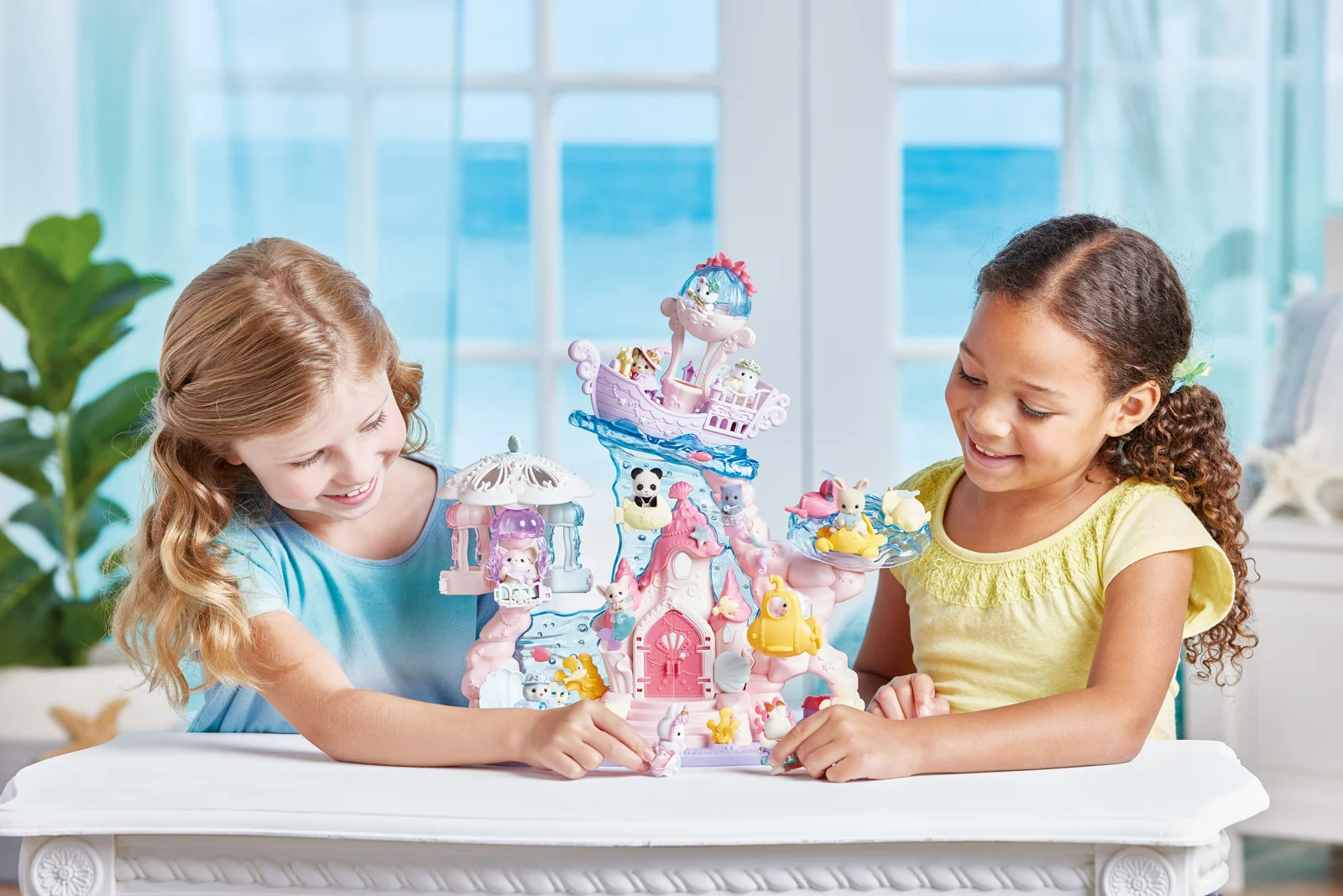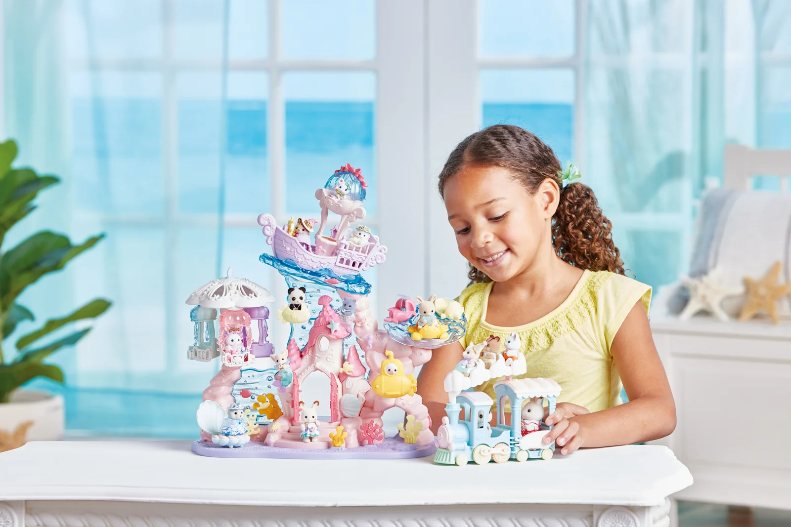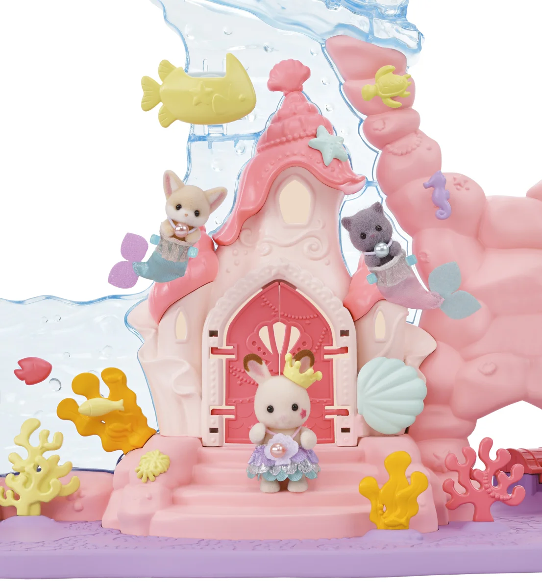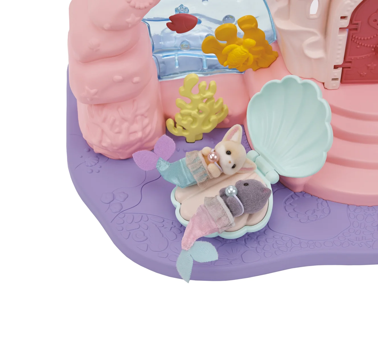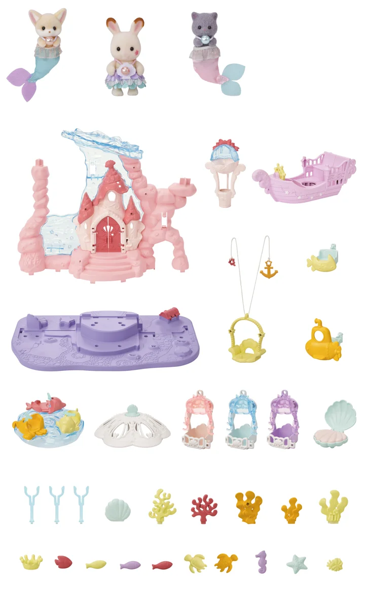 Objevte nádherný podmořský palác mořských víl, kde čeká spousta atrakcí a tři roztomilá miminka v kostýmech mořských víl. Sada přináší jedinečnou kombinaci hravosti, fantazie a kouzelné atmosféry oceánu. Co všechno zde najdete? Obsahuje kolotoč „Aqua-Go-Round“, houpačky ve tvaru medúz a spoustu dalších atrakcí, do kterých mohou miminka a kolébková miminka nasednout. Loď snů, kterou lze vyjmout a hrát si s ní samostatně. Vhodné také jako výstavní kousek – místo až pro 50 miminek. Součástí balení jsou i tři figurky v kouzelných outfitech: Crème miminko čokoládového králíčka, Blake miminko perské kočky do kolébky a Kaya miminko fenka do kolébky. Hraní s figurkami Sylvanian Families rozvíjí kreativitu a učí emoce prostřednictvím vytváření a vyprávění příběhů na základě každodenních zkušeností a pozorování světa. Vyznačují se nejvyšší kvalitou a výjimečným důrazem na detaily. Figurky Sylvanian Families mají pohyblivou hlavu. Oblečení je vyrobeno tak, aby se dalo opakovaně svlékat a oblékat. Baleno v krabičce. Rozměry balení: 35 x 47 x 14 cm. Věk: 3+