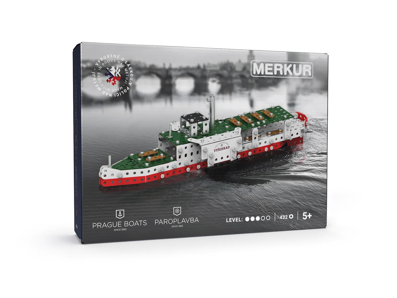 Ponořte se do světa kreativity a zábavy se stavebnicí Merkur – Parník Vyšehrad. Tato limitovaná edice parníku Vyšehrad vznikla ve spolupráci s Prague Boats, která tento rok slaví 160 let paroplavby. Jedinečná sada je ideálním nástrojem pro rozvoj technických dovedností a představivosti dětí. Stavebnice obsahuje kvalitní kovové díly, které se snadno spojují šroubky, což podporuje rozvoj jemné motoriky, logického myšlení a soustředění. Sada obsahuje: 432 dílků. Úroveň Merkur obtížnosti: . Baleno v krabičce. Rozměry parníku: Rozměr balení: 18 x 25,3 x 5,3 cm. Věk: 5+