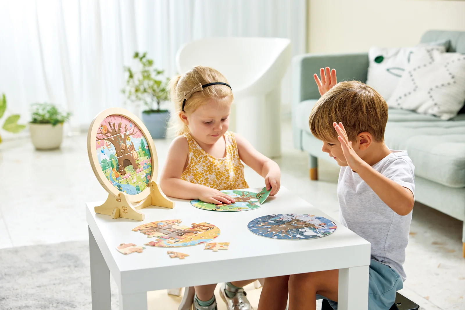 Puzzle se čtyřmi ročními obdobími provede vaše dítě cestou od jara až po zimu. Toto originální vrstvené puzzle nejen baví, ale také rozvíjí jemnou motoriku, koordinaci pohybů a trpělivost. Každá vrstva ukrývá novou výzvu, a přitom názorně ukazuje, jak se příroda během roku proměňuje. Speciální prvky svítící ve tmě dodají skládání prvek překvapení a radosti. Díky pevnému dřevěnému podstavci si mohou děti své hotové dílo hrdě vystavit – a mít tak pocit opravdového úspěchu i motivaci k dalšímu objevování. Tipy na hraní: Skládejte vrstvené puzzle, začněte jarem a postupně se pokračujte až k zimě. Prozkoumejte rozdíly v ročních obdobích a efekt záře ve tmě. Dřevěnou podložku použijte k vystavení. Rozměry puzzle: 24,5 x 24,5 x 1,3 cm. Rozměry balení: 30 x 30 x 3 cm. Věk: 3+
