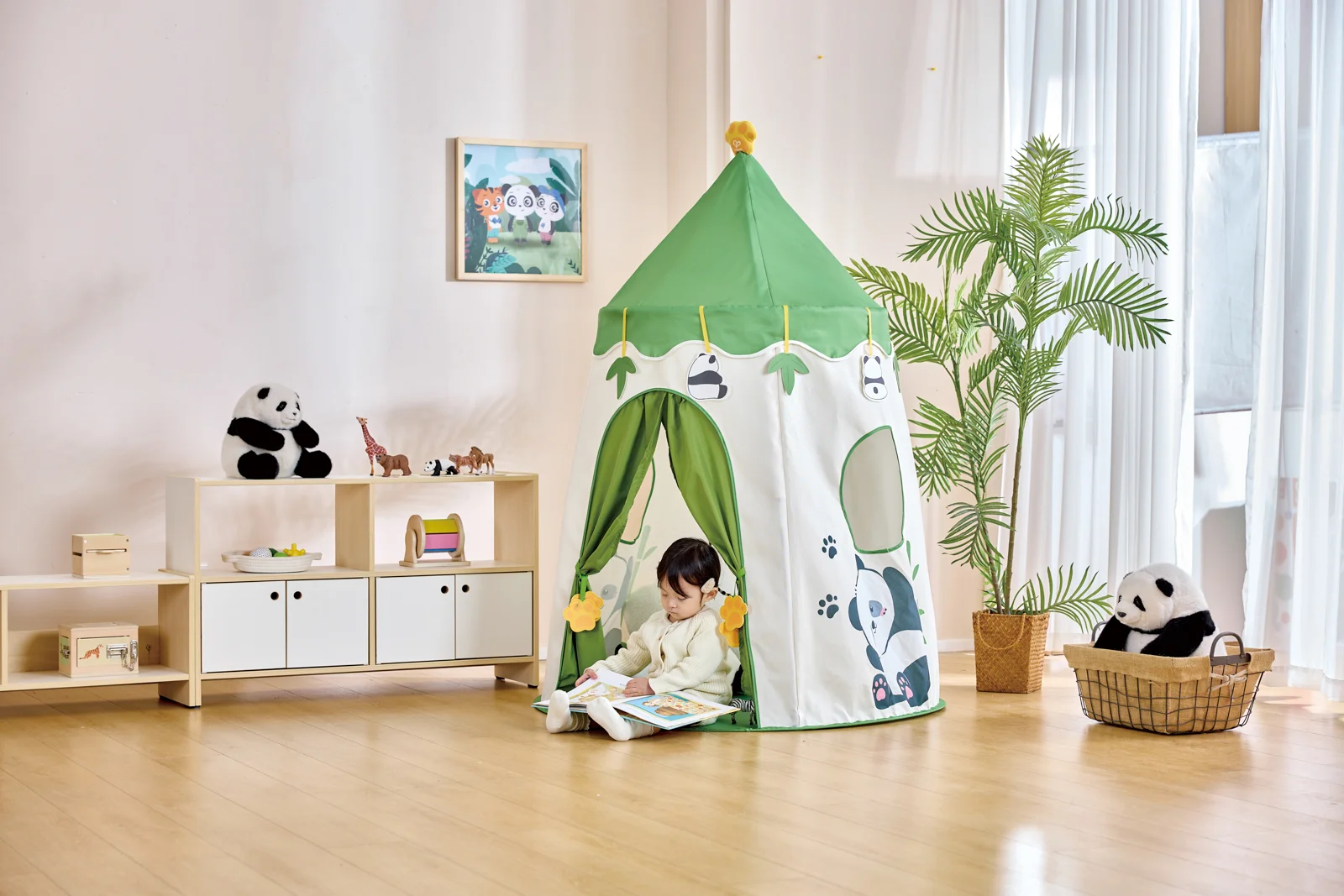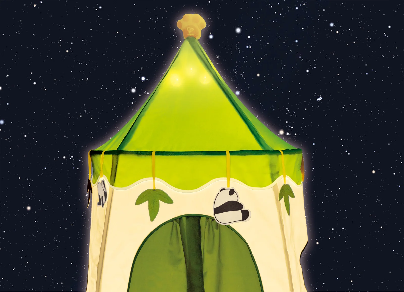 Proměňte dětské hry v kouzelné dobrodružství s tímto rozkošným stanem. Stan navržený speciálně pro nejmenší děti, nabízí bezpečný, pohodlný a zářivý prostor pro hodiny zábavy a fantazie. Roztomilý design s Pandou si děti okamžitě zamilují. Vestavěná LED světla dodají stanu nádech kouzelné magie – ideální pro vyprávění příběhů, hry nebo odpočinek. Lehká skládací konstrukce, snadná montáž a demontáž. Praktická taštička na zip pro snadné uložení stanu. Baterie: 1 x AAA, není součástí. Rozměry stanu: 150 x 100 x 100 cm. Rozměry balení: 58,5 x 58,5 x 8 cm. Věk: 3+