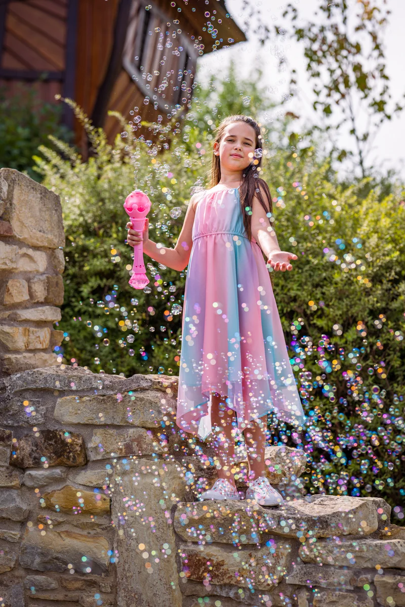 VíceKouzelná hůlka, která se po zapnutí rozzáří, zahraje melodii a vykouzlí proud bublinek. Ideální doplněk pro každou malou princeznu, která miluje svět fantazie a zábavy. Světelné a zvukové efekty. Obsahuje 100 ml roztoku na bubliny. Napájení: 3 x AA baterie, nejsou součástí balení. Baleno v open boxu. Rozměry produktu: 29,5 x 10 x 10 cm. Rozměry balení: 29,6 x 13,5 x 7,5 cm. Věk: 3+
