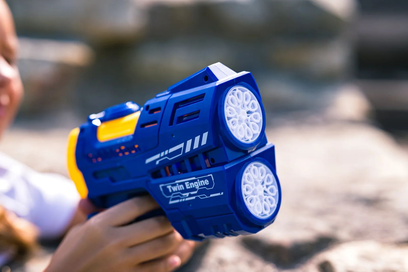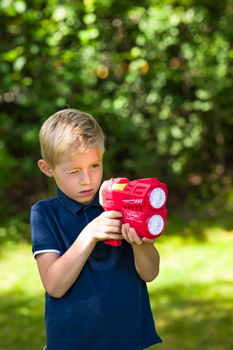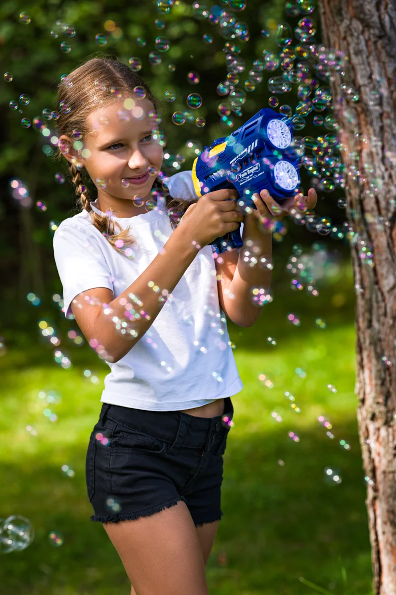 VíceBlaster nové generace s 20 bublinkovými otvory a světelnými efekty. Po zapnutí se rozsvítí a vytváří proud jemných bublinek. Díky integrovanému zásobníku zajistí dlouhotrvající a vizuálně působivou zábavu. 20 otvorů pro intenzivní produkci bublinek. LED světelné efekty. Vestavěný zásobník na 105 ml bublinkového roztoku. Napájení: Lithiová baterie, nabíjení USB kabelem. Assort je náhodný mix modelů. Výběr nelze ovlivnit. V kolekci dvě barevné varianty. Baleno v open boxu. Rozměry produktu: 17 x 20 x 7 cm. Rozměry balení: 22,5 x 22 x 7,5 cm. Věk: 3+