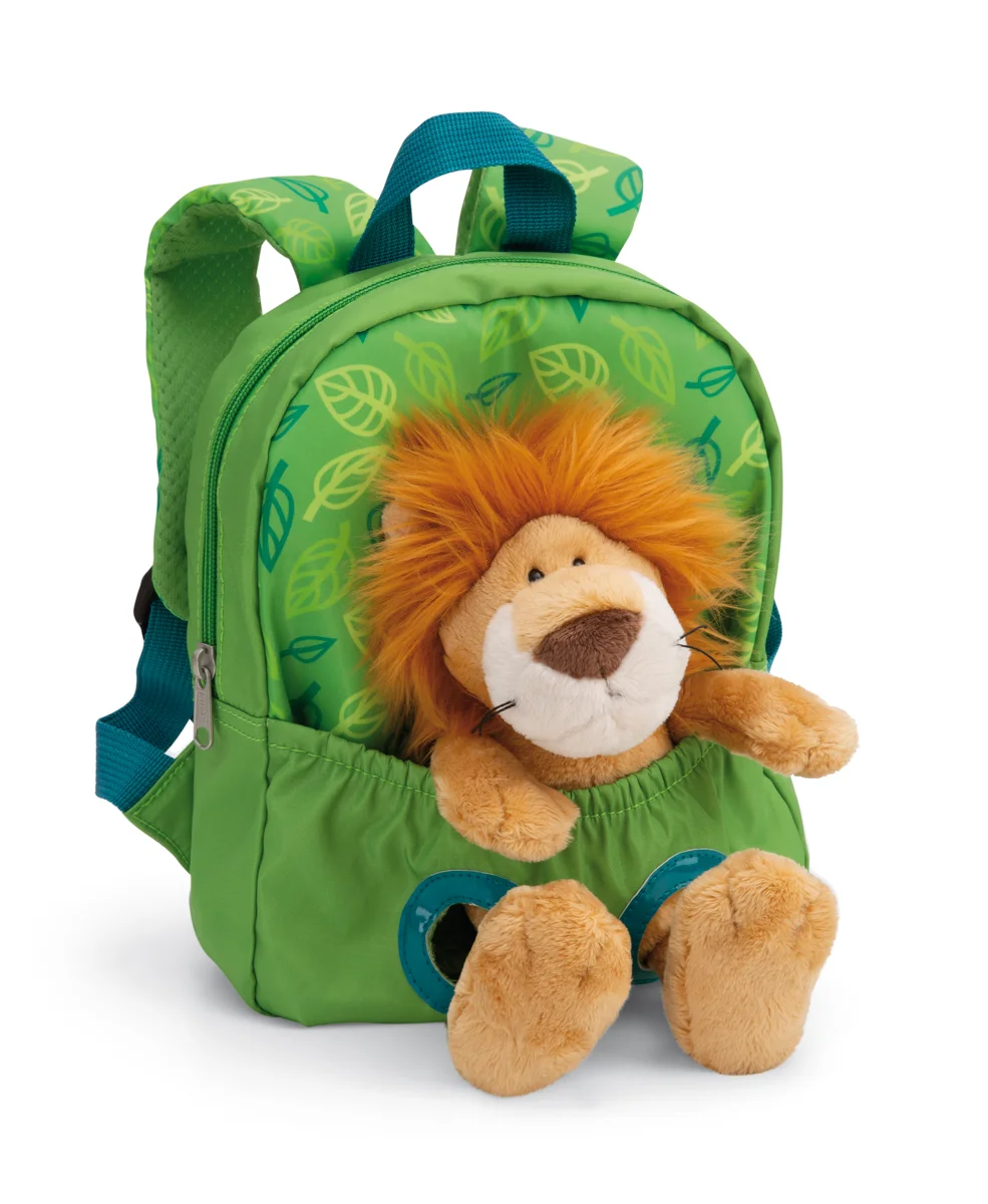 VíceDětský batoh s plyšovou hračkou Lev. Kdo by chtěl odejít z domova bez své oblíbené plyšové hračky? Batoh NICI v zeleném designu s motivem lístečků spojuje okouzlující mazlení s funkčností univerzálního dětského batohu. Jedinečný lev z heboučkého měkkého plyše NICI sedí na místě v samostatně připevněné kapse s gumičkou a sleduje svět ze zad dítěte. 25 cm plyšové zvířátko lze snadno vyjmout a mazlit se, hrát si a kochat se. Polstrované a nastavitelné ramenní popruhy a příjemně měkká zádová oblast v osvědčené kvalitě NICI zajišťují dobrý komfort nošení. Batoh s integrovanou jmenovkou je skvělým dárkem a ideálním společníkem pro všechny malé dobrodruhy, objevitele světa a baťůžkáře. Nastavitelná délka ramenních popruhů, jedna hlavní kapsa se zavíráním na zip. Výška plyšového lva: 25 cm. Rozměry batohu: 26 x 21 x 13 cm. Věk: 3+