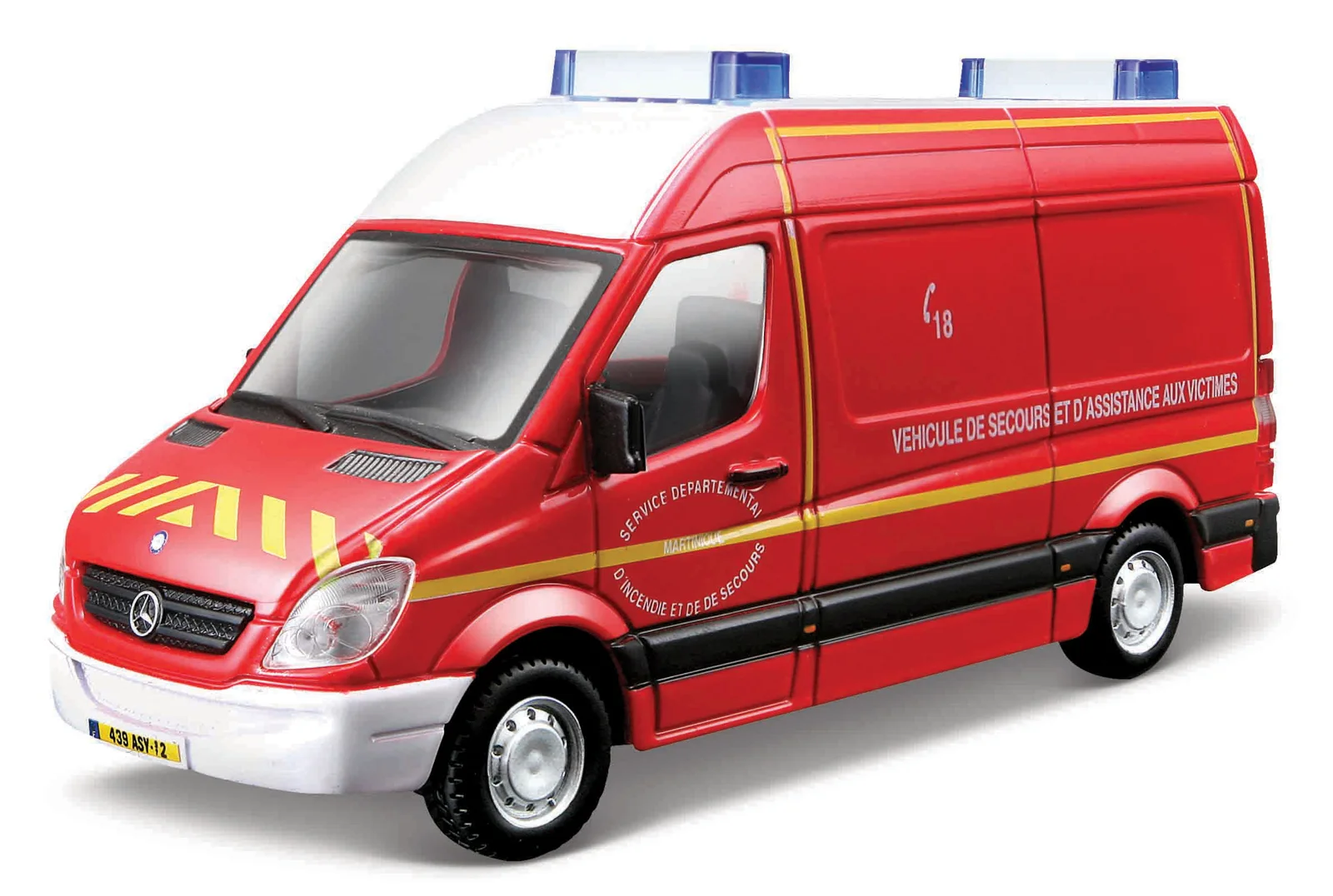 Modely záchranných vozidel Bburago v měřítku1:50 z kolekce Emergency jsou sbírkou modelů s vysokým důrazem na přesnost detailů. Modely jsou vyrobeny z litého kovu s plastovými detaily. Assort je náhodný mix modelů. Výběr nelze ovlivnit. Modely v assortu: Land Rover Defender 110 Hasiči 1:47, Land Rover Defender 110 Policie 1:47, Renault Master 1:50 Hasiči, Mercedes - Benz Sprinter 1:48 Záchranné požární vozidlo Martinik, Mercedes - Benz Sprinter 1:48 Policie, Mercedes - Benz Vito 1:50 Policie, Volkswagen Crafter 1:50 Ambulance. Baleno v krabičce. Nevhodné pro děti do 3 let. Rozměry balení: 8,8 x 15,5 x 6,5 cm. Věk: 3+