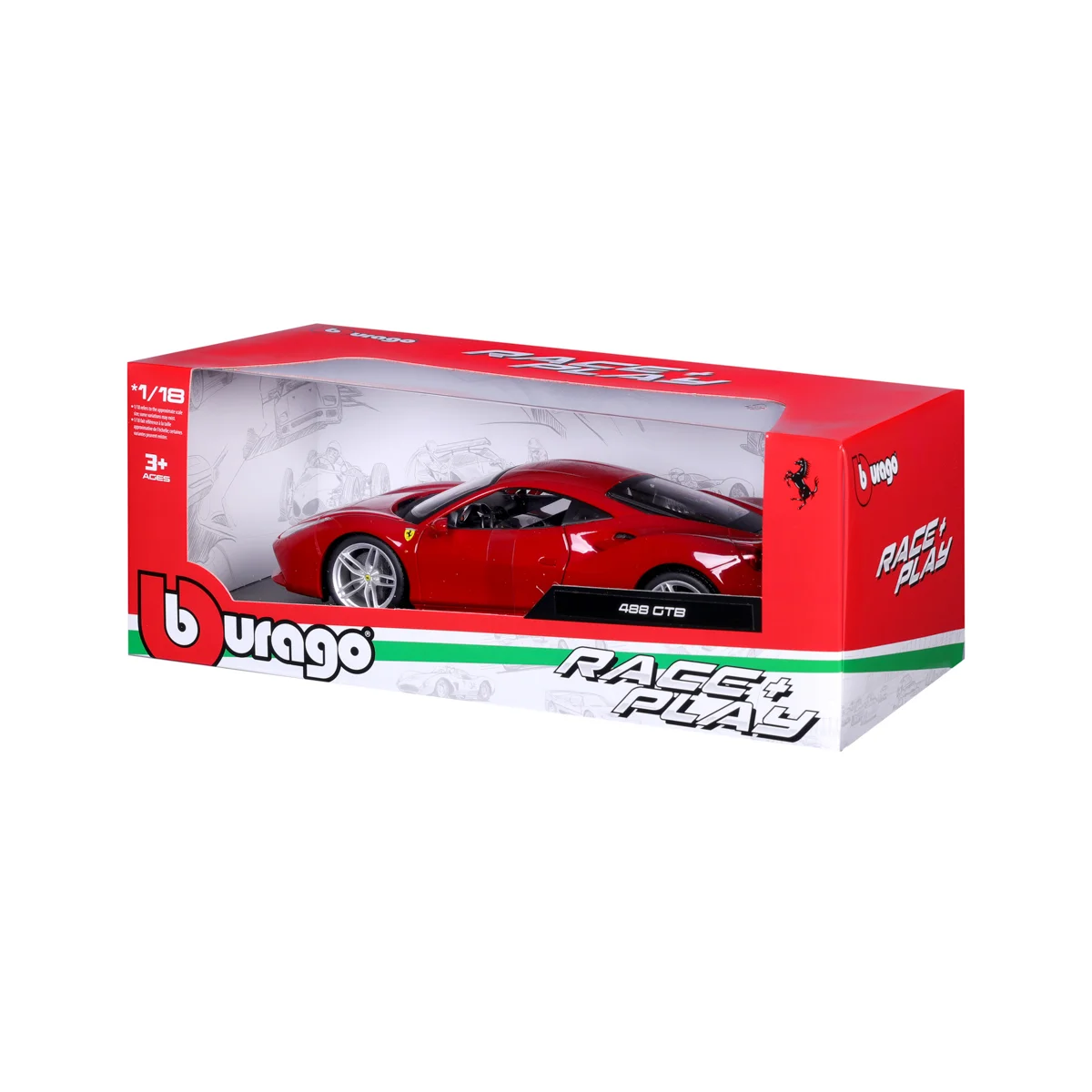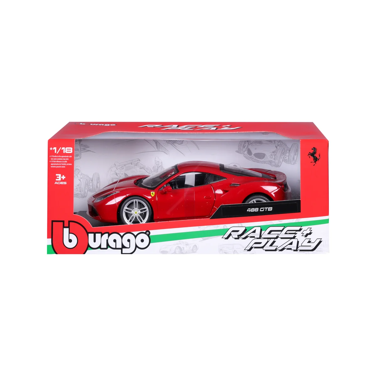 Bburago 1:18 RACE+PLAY Ferrari 488 GTB Red