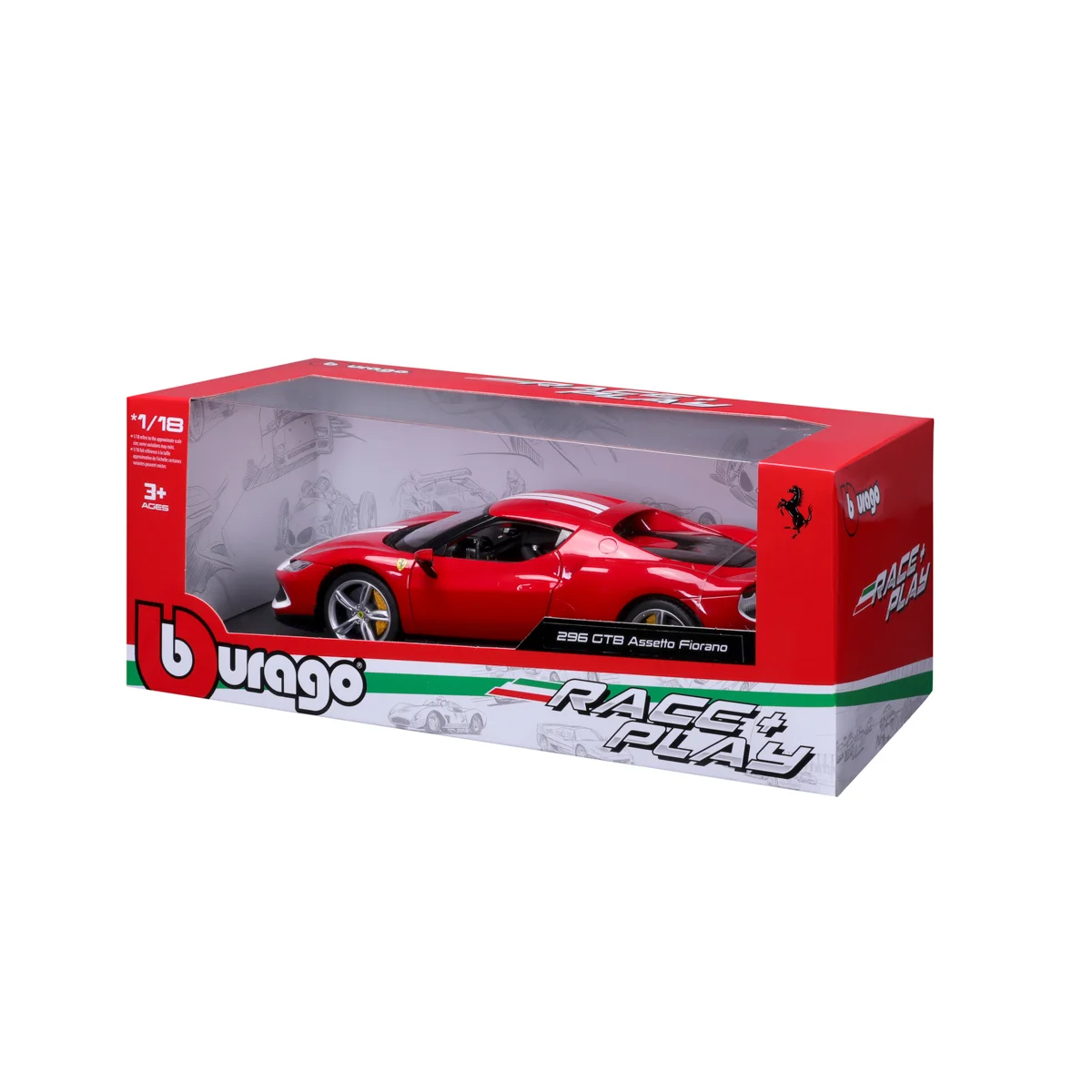 Bburago 1:18 RACE+PLAY, Ferrari 296 GTB Assetto Fiorano - Red