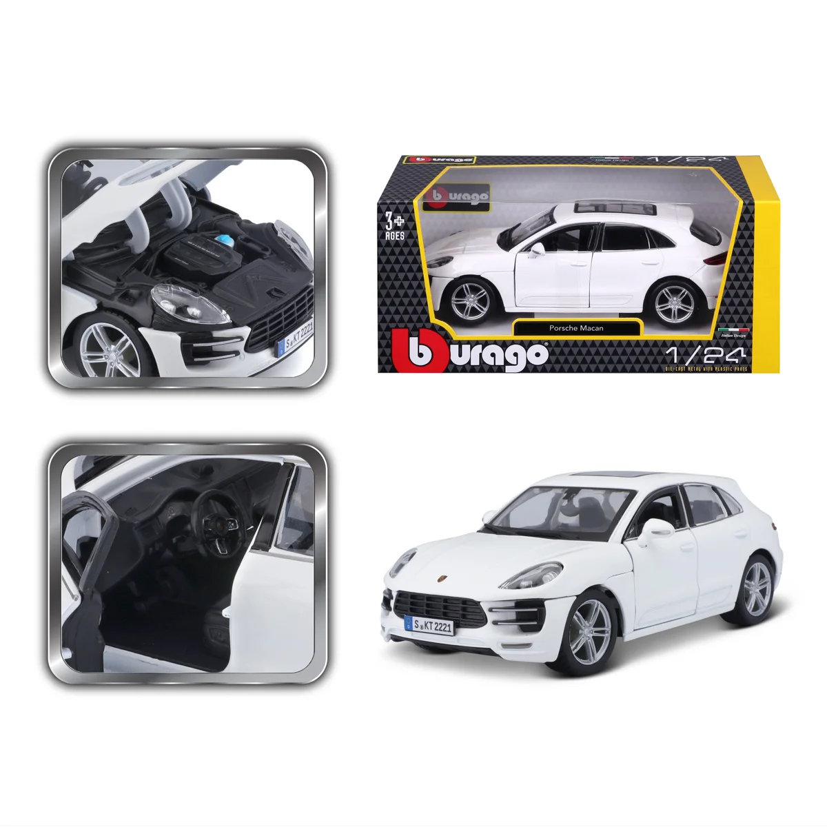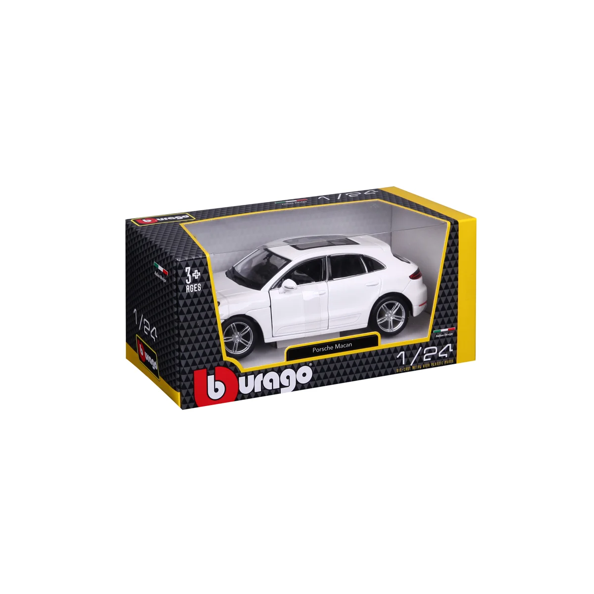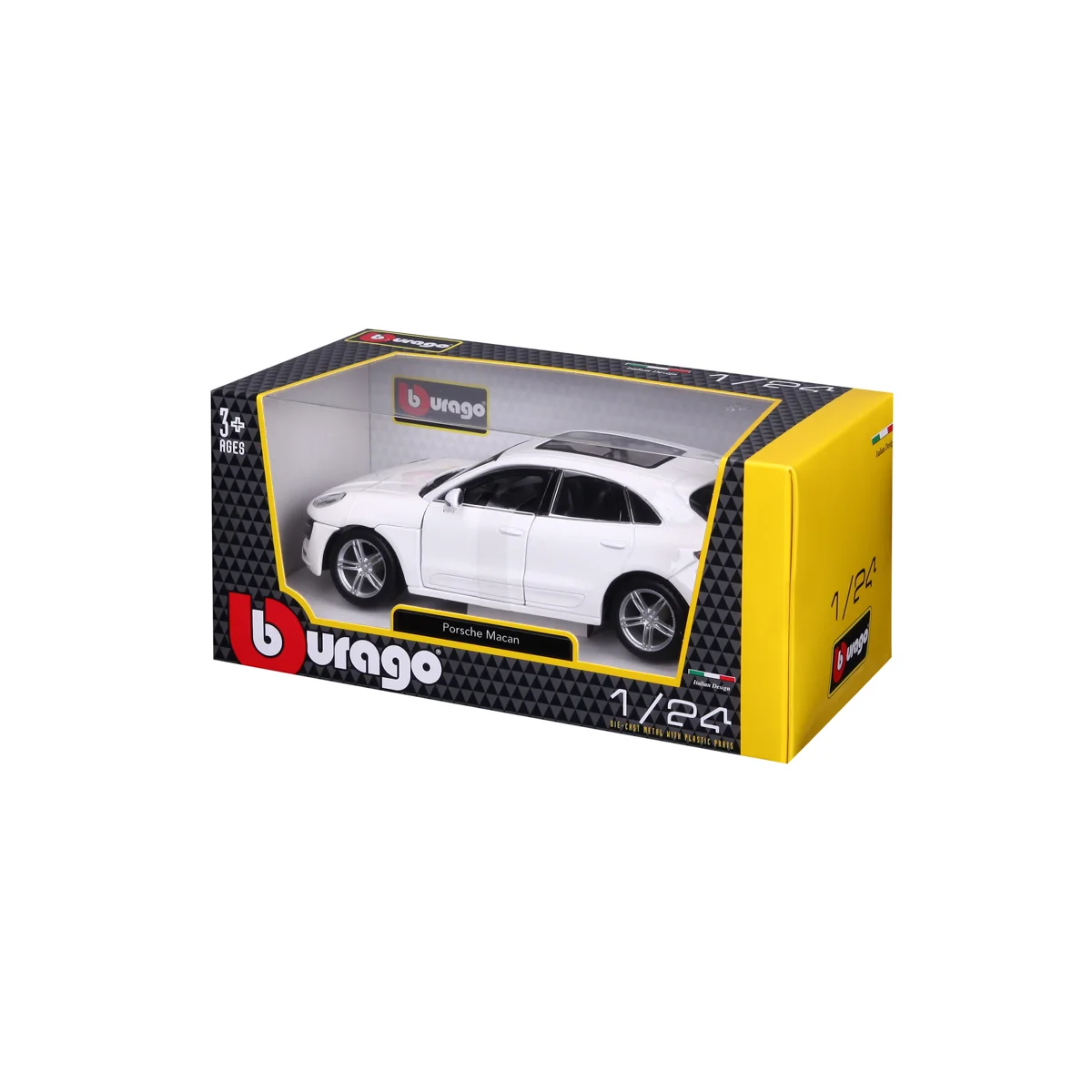 Modely automobilů Bburago v měřítku1:24 jsou sbírkou krásného designu s vysokým důrazem na přesnost detailů. Modely jsou vyrobeny z litého kovu s plastovými detaily. Většina modelů z kolekce má otevírací dveře, kufr nebo kapotu. Některé z modelů mají funkční řízení. Baleno v krabičce. Nevhodné pro děti do 3 let. Rozměry balení: 10,5 x 23 x 11,5 cm. Věk 3+