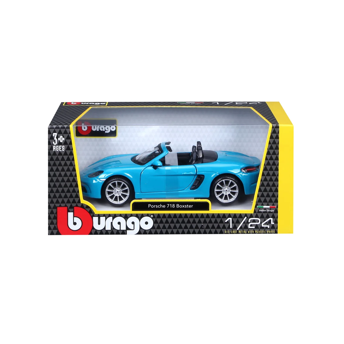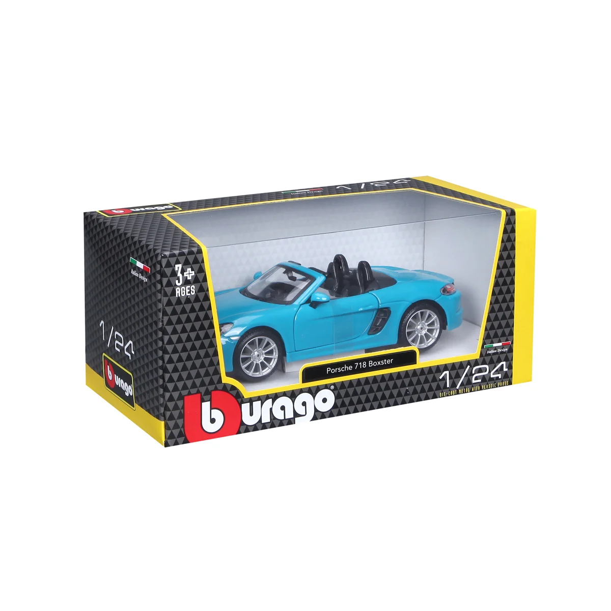 Modely automobilů Bburago v měřítku1:24 jsou sbírkou krásného designu s vysokým důrazem na přesnost detailů. Modely jsou vyrobeny z litého kovu s plastovými detaily. Většina modelů z kolekce má otevírací dveře, kufr nebo kapotu. Některé z modelů mají funkční řízení. Baleno v krabičce. Nevhodné pro děti do 3 let. Rozměry balení: 10,5 x 23 x 11,5 cm. Věk 3+