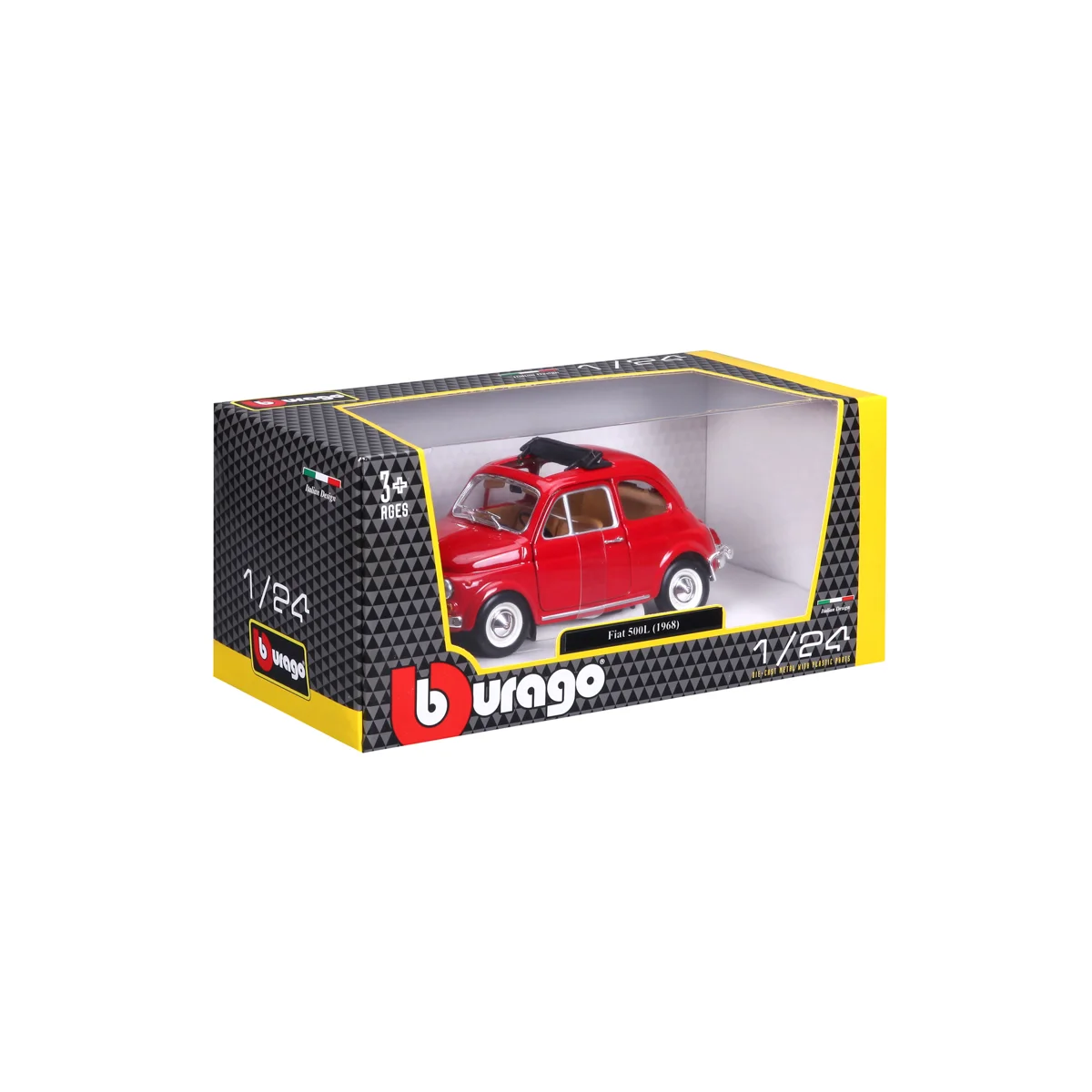 Modely automobilů Bburago v měřítku1:24 jsou sbírkou krásného designu s vysokým důrazem na přesnost detailů. Modely jsou vyrobeny z litého kovu s plastovými detaily. Většina modelů z kolekce má otevírací dveře, kufr nebo kapotu. Některé z modelů mají funkční řízení. Baleno v krabičce. Nevhodné pro děti do 3 let. Rozměry balení: 10,5 x 23 x 11,5 cm. Věk 3+