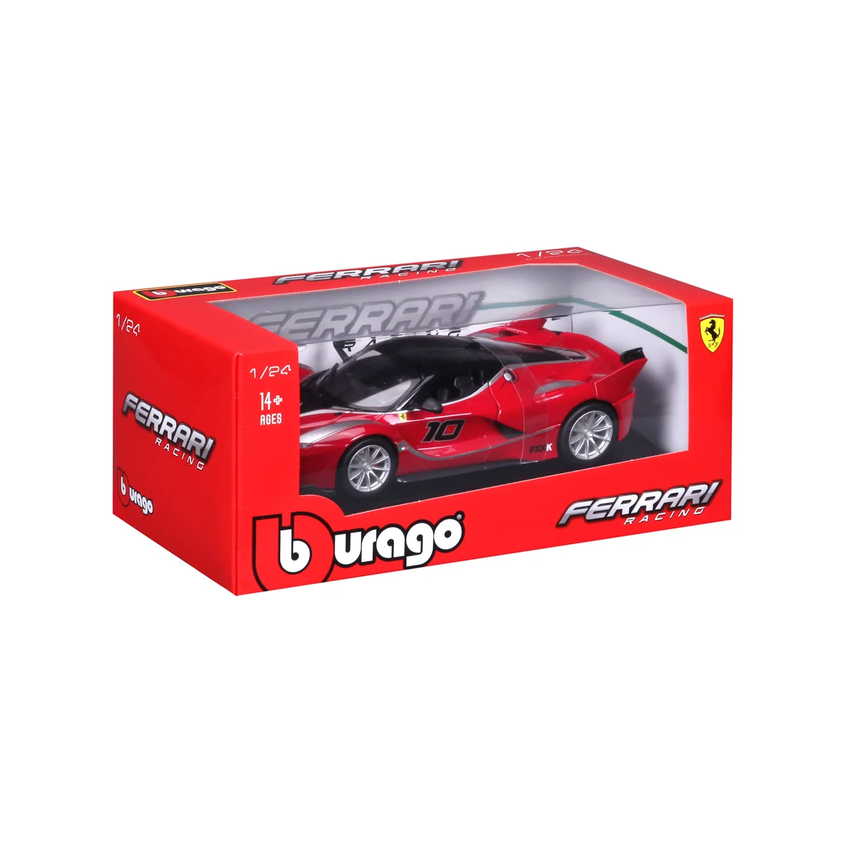 Modely závodních automobilů Ferrari v měřítku 1:24 z kolekce RACING jsou sbírkou krásného designu s vysokým důrazem na přesnost detailů. Modely jsou vyrobeny z litého kovu s plastovými detaily. Detailní provedení motorových prostor a interiéru. Většina modelů z kolekce má otevírací dveře, kufr nebo kapotu. Některé z modelů mají funkční řízení. Každý z modelů je v závodním designu a se závodním číslem Model je namontován na výstavním stojánku. Baleno v krabičce. Nevhodné pro děti do 3 let. Rozměry balení: 10,3 x 24,5 x 12,6 cm. Věk: 14+