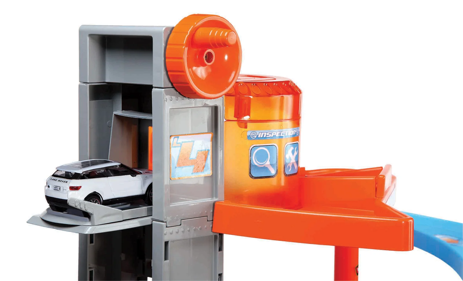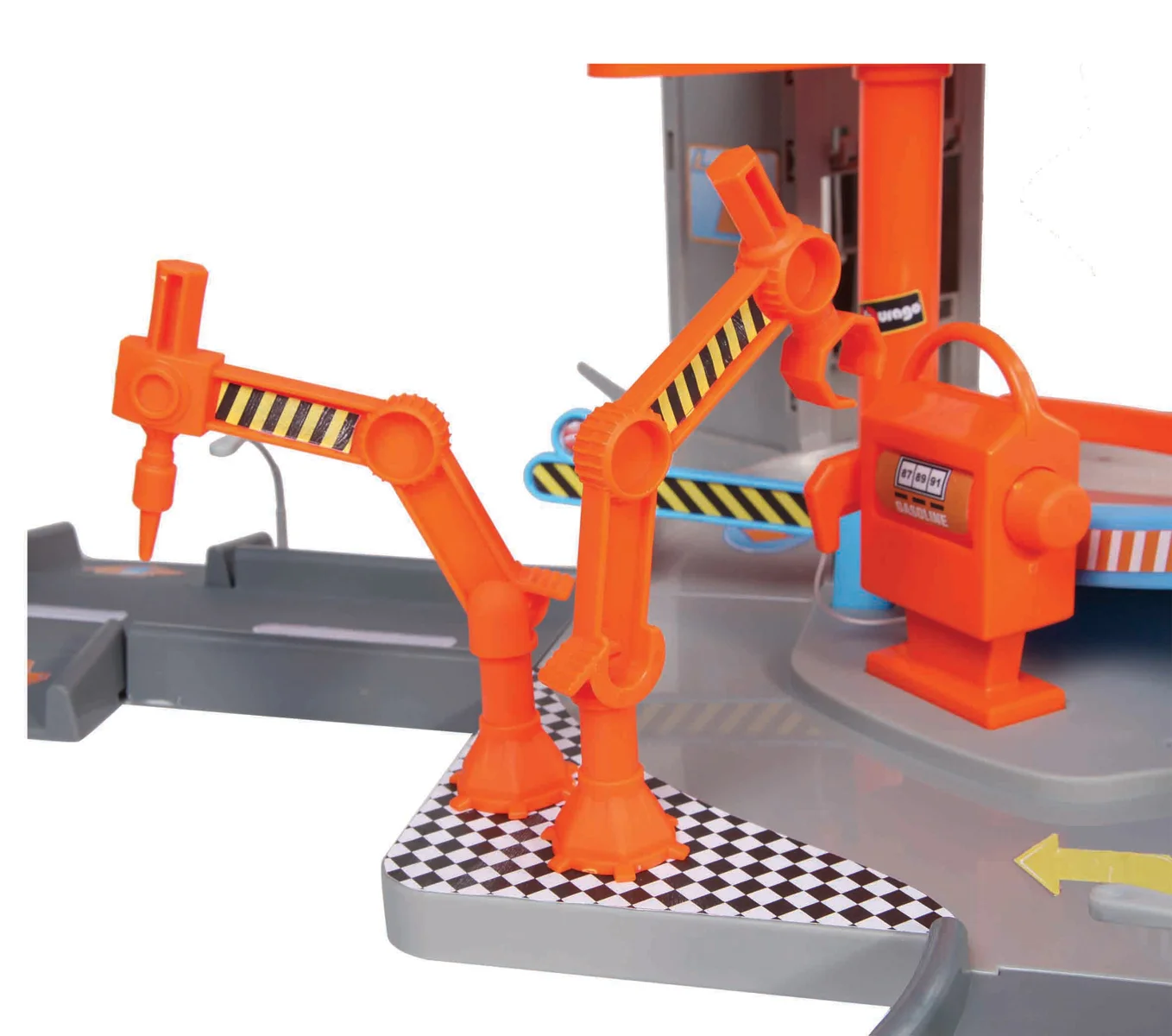 VíceBburago Street Fire – Mega Dealer Showroom. Zažij svět plný akce s velkou parkovací herní sadou z kolekce Street Fire. Čtyřpatrová garáž se showroomem, výtahem, rampou, nebo myčkou přináší dětem nekonečné hodiny zábavy. Součástí sady jsou dvě kovová autíčka Street Fire v měřítku 1:43, takže si malí řidiči mohou okamžitě začít hrát. Díky výtahu se auta snadno dostanou až na vrchol garáže, pak můžete zaparkovat v jakémkoliv patře nebo sjet až dolů po točité rampě a zamířit do showroomu nebo myčky. Sada je vyrobena z odolného plastu. Baleno v krabičce. Nevhodné pro děti do 3 let. Rozměry složené garáže: 90 x 70 x 63 cm. Rozměry balení: 35,8 x 55,8 x 11,1 cm. Věk: 3+