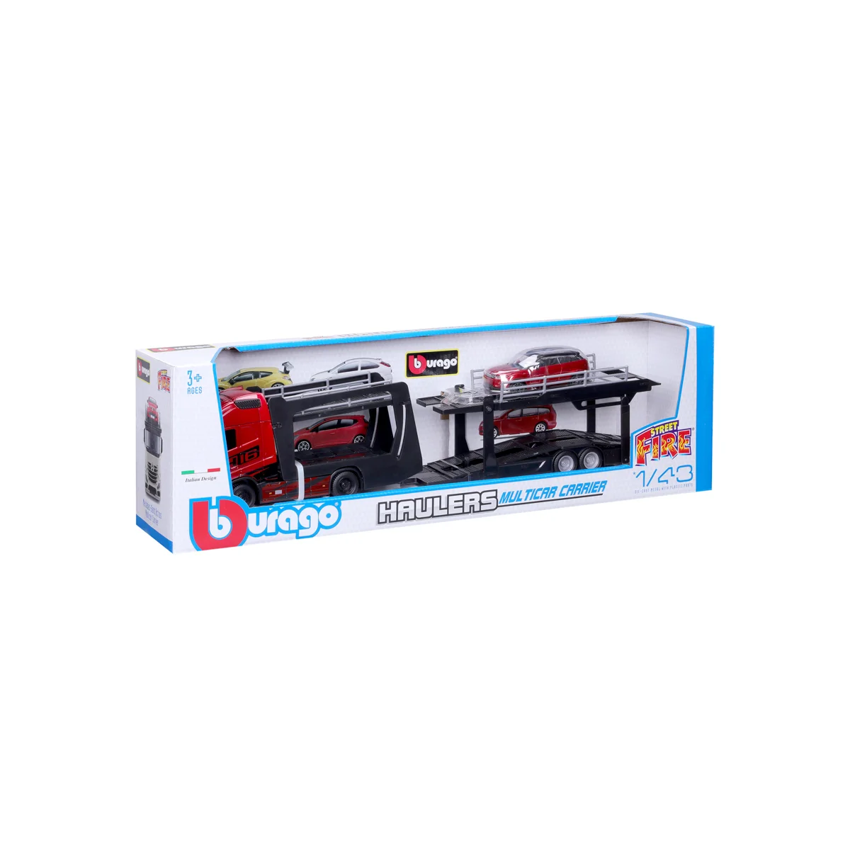 VíceModely kamionů v měřítku1:43 Multicar Carrier s návěsem pro přepravu aut z kolekce Street Fire jsou sbírkou modelů s vysokým důrazem na přesnost detailů. Modely jsou vyrobeny z litého kovu s plastovými detaily. Každý z kamionů je doplněn jedním modelem osobního automobilu. V přepravním návěsu mohou malí řidiči převážet až pět autíček z kolekce Street Fire. Baleno v krabičce. Nevhodné pro děti do 3 let. Rozměry balení: 15,5 x 52,1 x 11,8 cm. Věk: 3+