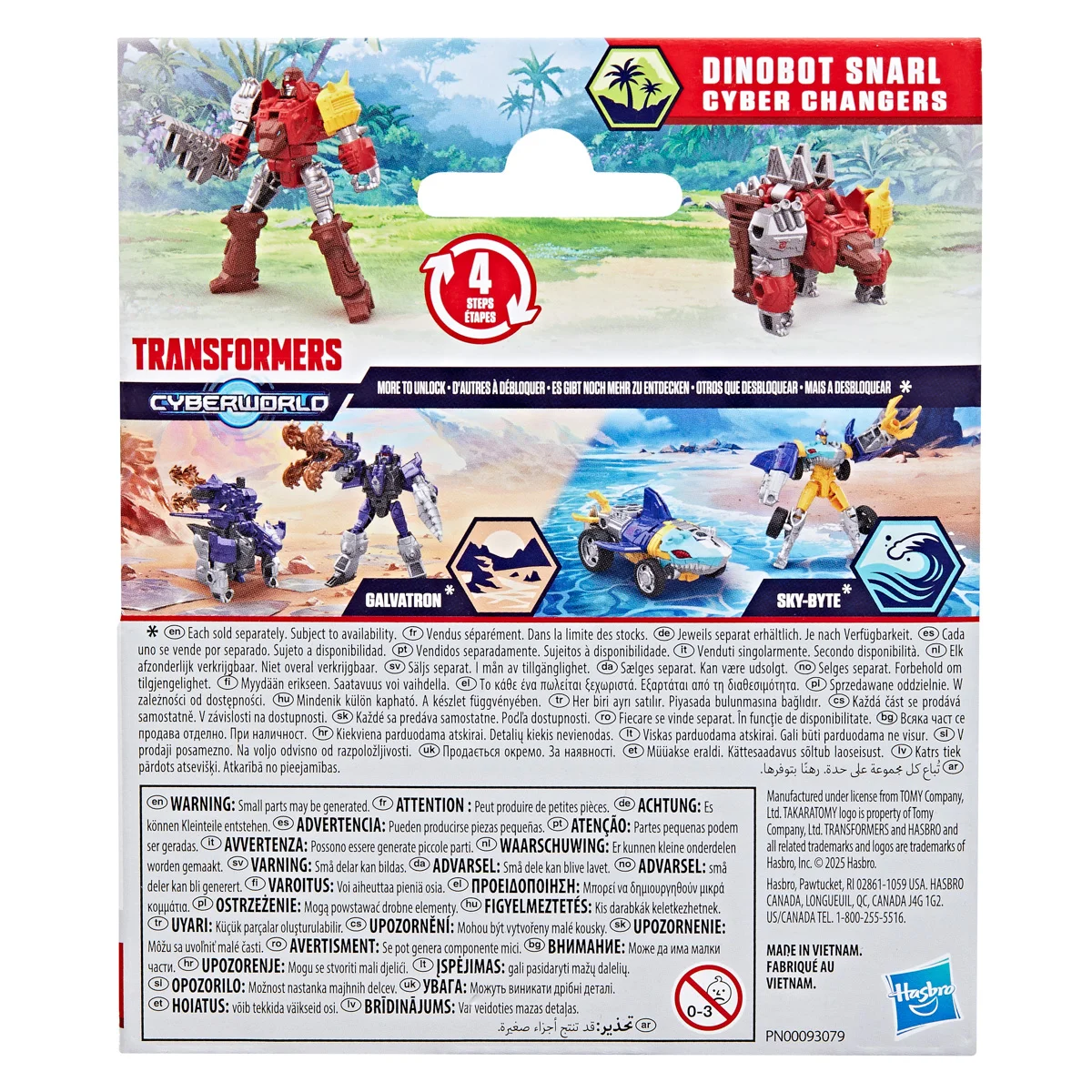 VíceTransformers Cyberworld - Cyber Changers přináší roboty v přestrojení do zcela nové úrovně boje! Staří známí – oblíbené postavy, Autoboti a Decepticoni, kteří možná vypadají trochu povědomě, se vracejí do akce. Akční figurka Dinobot Snarl se snadno promění z robota na alternativní mód Dinosaura ve 4 krocích. Přeměna ve 4 krocích je dostatečně jednoduchá, aby ji děti zvládly samy. V režimu robota je figurka vysoká přibližně 10 cm a je polohovatelná. Vyrobeno z kvalitního plastu. Rozměry balení: 15,08 x 12,7 x 4,9 cm. Věk: 6+