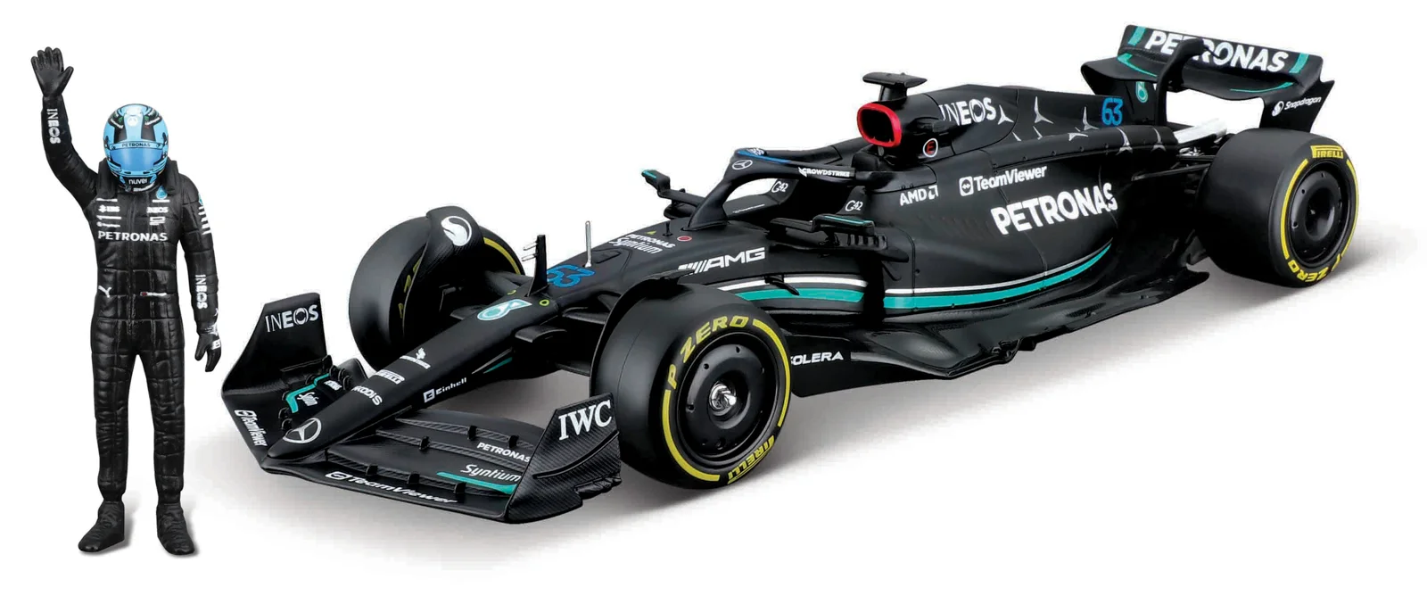 Bburago 1:24 RACE Formula F1 with Driver Figure - Mercedes-AMG F1 W14 E (2023) #63 George Russell