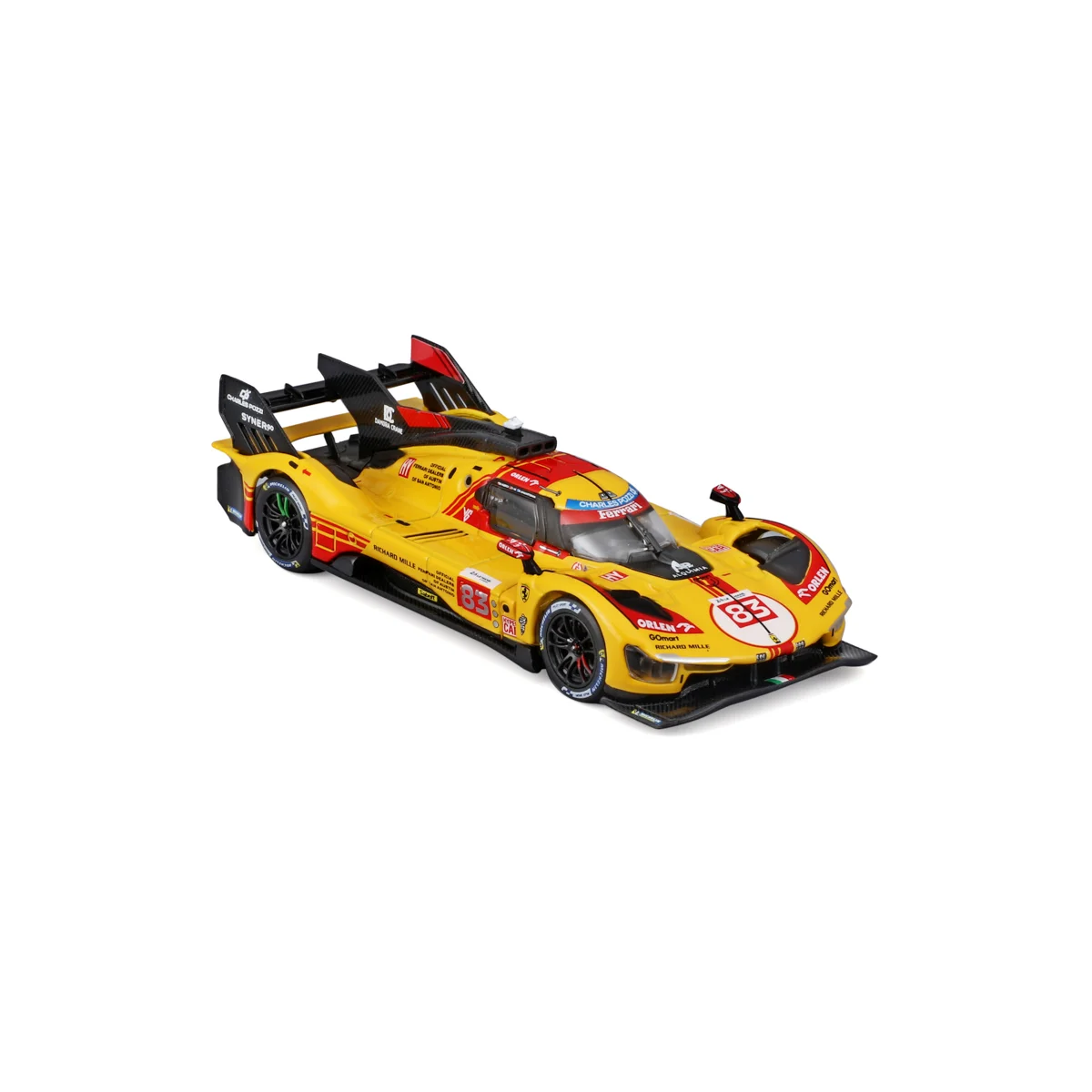 VíceModely závodních automobilů Ferrari v měřítku 1:43 z kolekce RACING jsou sbírkou krásného designu s vysokým důrazem na přesnost detailů. Modely jsou vyrobeny z litého kovu s plastovými detaily. Každý z modelů je v závodním designu a se závodním číslem. Model je namontován na výstavním stojánku a umístěn v dekorativním akrylovém boxu. Díky dekorativnímu boxu je tento model skvělým sběratelským kouskem a dárkem pro každou příležitost. Nevhodné pro děti do 3 let. Rozměry balení: 6,7 x 16 x 8,7 cm. Věk: 14+