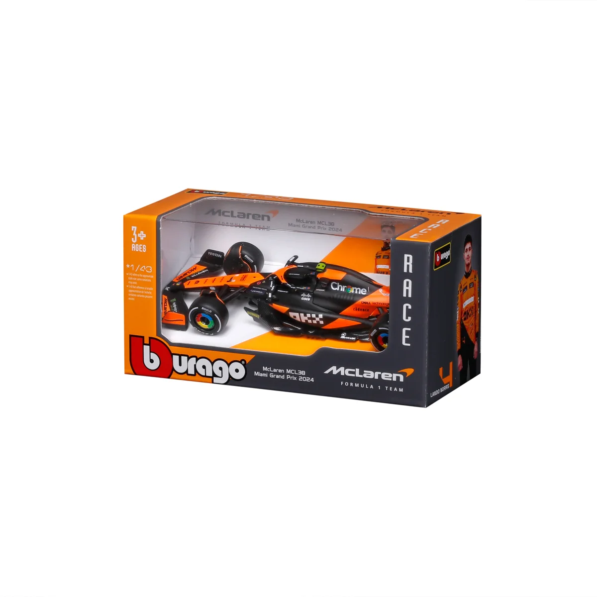Bburago 1:43 RACE Formula F1 - McLaren F1 Team MCL38 (2024) #4 (Lando Norris)