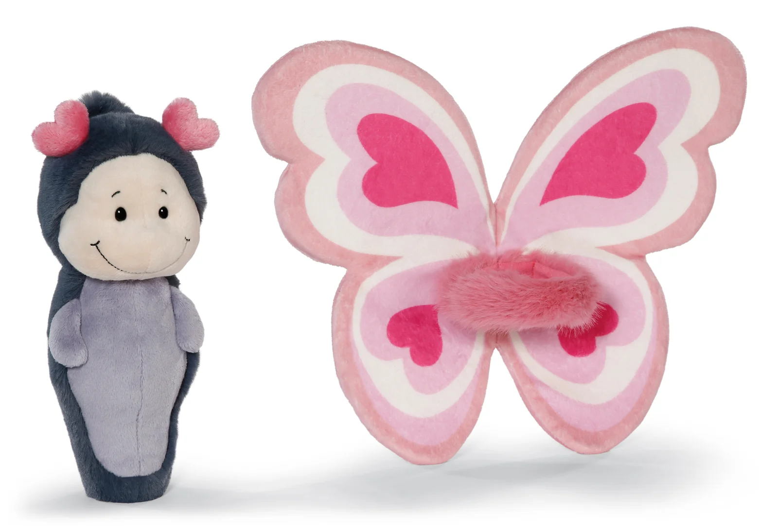 Krásný motýlek Love z Love z kolekce Love Classic od NICI, vyrobený z hebkého plyše je skutečně kouzelným dárkem, který si získá srdce obdarovaného. Motýlí tělíčko v jemných odstínech šedé a hravá tykadla ve tvaru srdíček okamžitě vám vykouzlí úsměv na tváři. Roztomilý obličej a křídla ve tvaru srdce v různých odstínech růžové z něj dělají jedinečnou plyšovou hračku. A co je na něm nejlepší? Křídla jsou odnímatelná a nabízejí ještě více zábavy při hře. Motýlek Love je s láskou zabalen v dárkové krabičce a už se těší, až vletí do života někoho výjimečného. Ať už k Valentýnu, narozeninám, ke Dni matek nebo jen tak pro radost – motýlek Love je dokonalým dárkem pro každou příležitost. Plyšová hračka je součástí světa výrobků NICI GREEN. Pro výrobky NICI GREEN se používá téměř výhradně plyš a výplňový materiál z recyklovaných materiálů. Především recyklované PET lahve se pro tento účel zpracovávají na RPET. Rozměry hračky: 21 x 20 x 10 cm. Věk: 0+