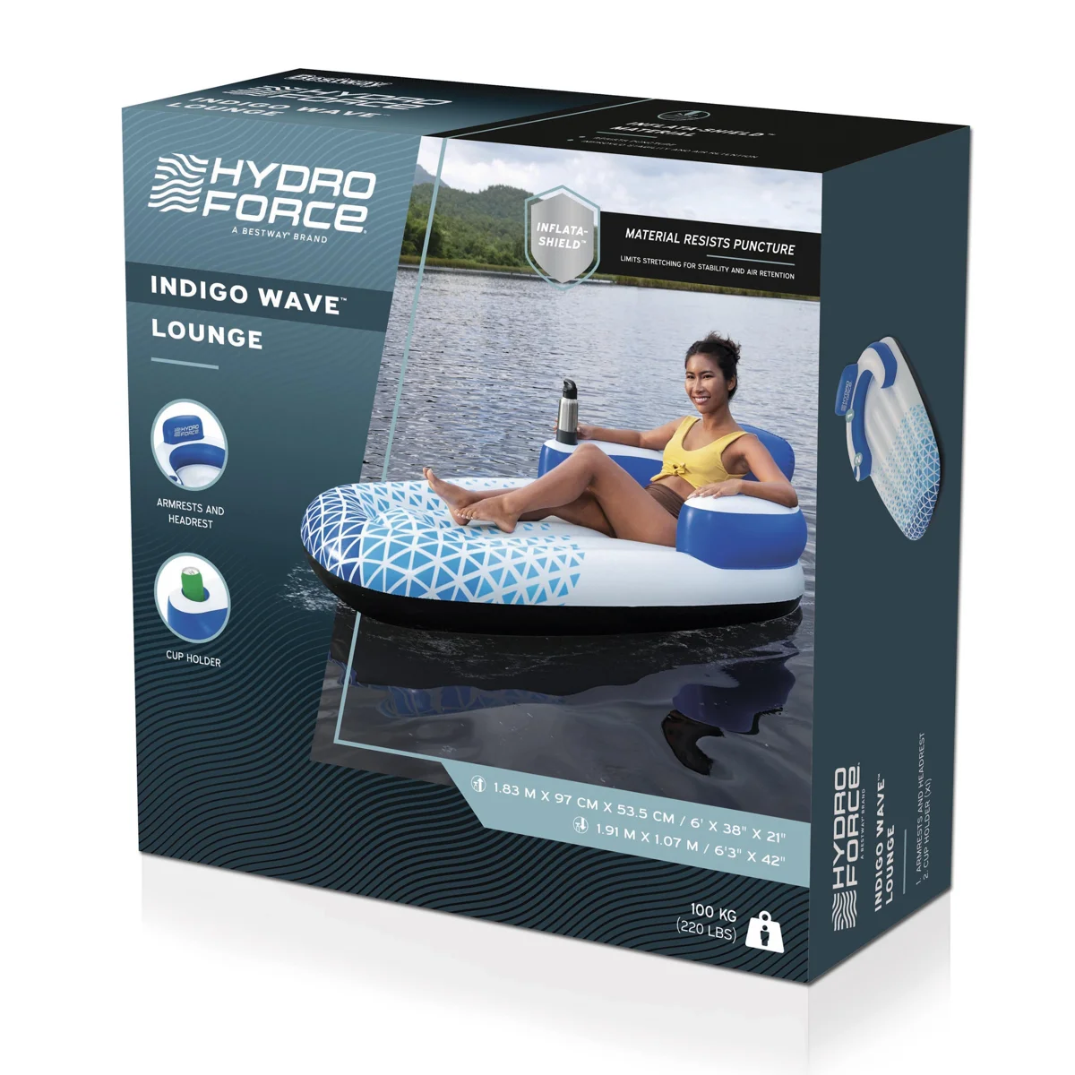 VíceNafukovací lehátko Indigo Wave™ kombinuje stylový design s maximálním pohodlím při relaxaci na vodě. Odolný materiál Inflata-Shield™ zajišťuje dlouhou životnost a vyšší odolnost proti poškození, zároveň nabízí lepší přilnavost. Inovativní povrchová úprava Color Shield™ chrání barvy před vyblednutím. Integrovaná opěrka hlavy a rukou zvyšuje komfort při odpočinku, zatímco držák na nápoje udrží občerstvení vždy po ruce. Nafouknutí i vyfouknutí je rychlé a snadné. Součástí balení je opravná záplata. Určeno pro 1 osobu. Maximální nosnost: 100 kg. Rozměry v nafouknutém stavu: 53,5 x 97 x 183 cm. Rozměry ve vyfouknutém stavu: 107 x 191 cm. Rozměry balení: 30 x 30 x 9 cm. Používejte pouze pod dohledem dospělé osoby a ve vodě, kde dítě dosáhne na dno. Věk: 14+