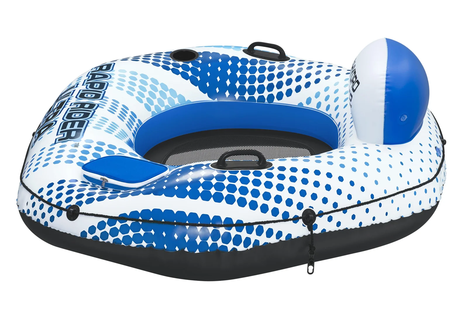 VíceBestway® Nafukovací křeslo se síťkou Rapid Rider™ Ultra nabízí maximální komfort a vybavení pro relaxaci na vodě. Rapid Rider™ Ultra z odolného PVC materiálu Inflata-Shield™ s povrchovou technologii Color Shield™, která pomáhá chránit barvy před vyblednutím. Křeslo je vybaveno pevnými madly, lankem po celém obvodu, držákem na nápoje, chladícím boxem s vodotěsným zipem. Nafukovací křeslo je vybaveno opěrkou zad, která poskytuje optimální komfort při relaxaci na vodě. Síťované sedátko zajistí příjemné ochlazení během horkých letních dní a umožní vám naplno si vychutnat pobyt ve vodě. Pomocí spon Clasp 'N Go™ lze propojit více plavidel a užít si zábavu i s přáteli. Rychloupínací ventily umožňují snadné nafouknutí i vyfouknutí a následné uskladnění. Včetně opravné záplaty. Určeno pro 1 osobu. Maximální nosnost: 225 kg. Nafouknutá velikost křesla: 50 x 132 x 152 cm. Nenafouknutá velikost křesla: 148 x 165 cm. Rozměry balení: 30 x 39 x 14,5 cm. Používejte pouze pod dohledem dospělé osoby. Věk: 14+