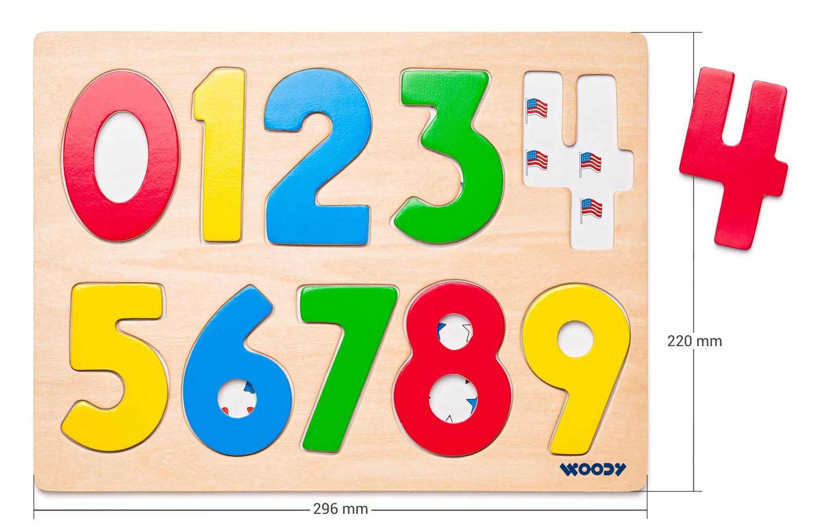 Tvarové puzzle na desce. Vhodné k výuce číslic i pro předškoláky.| Rozměr: 30 x 22 x 1cm | Věk: 2+