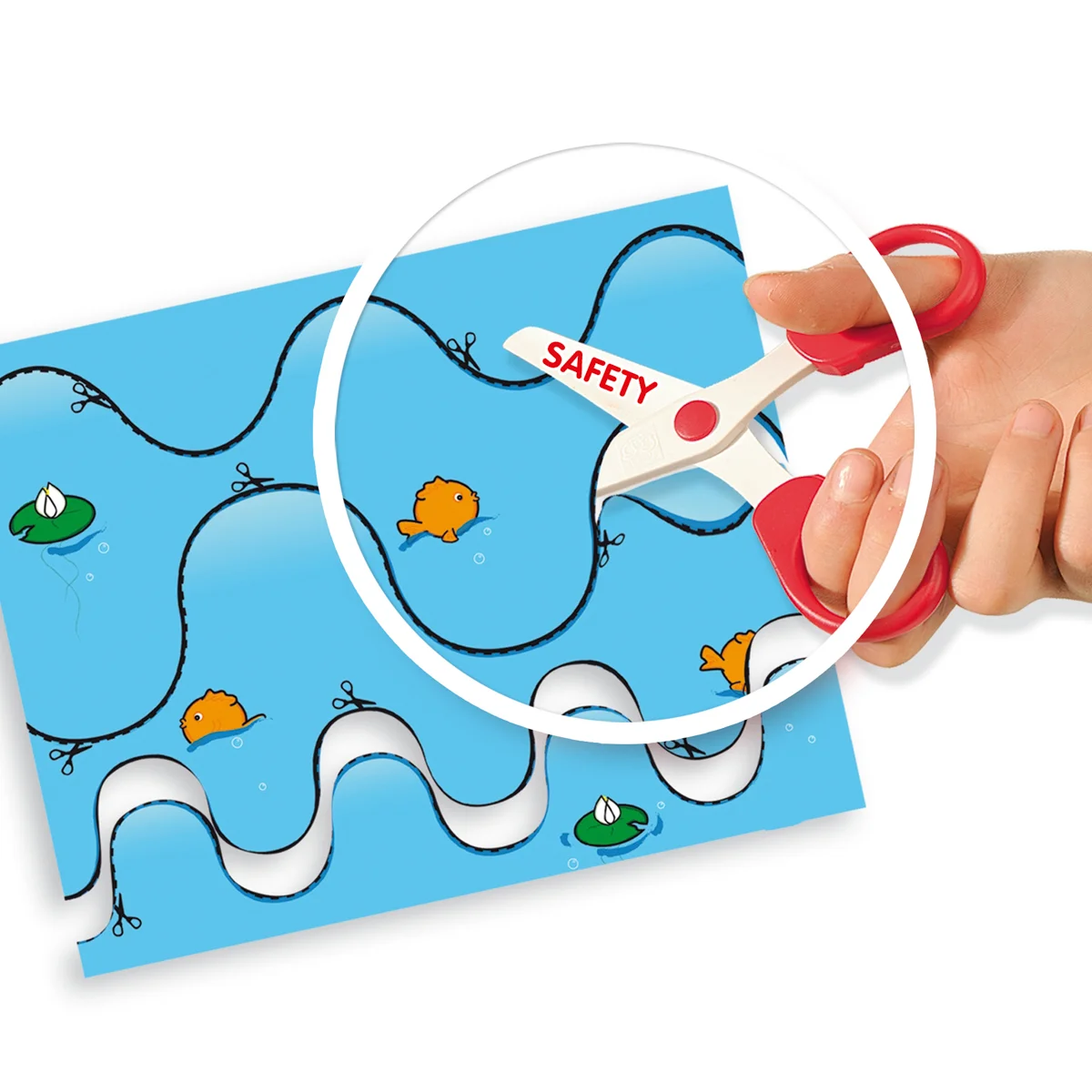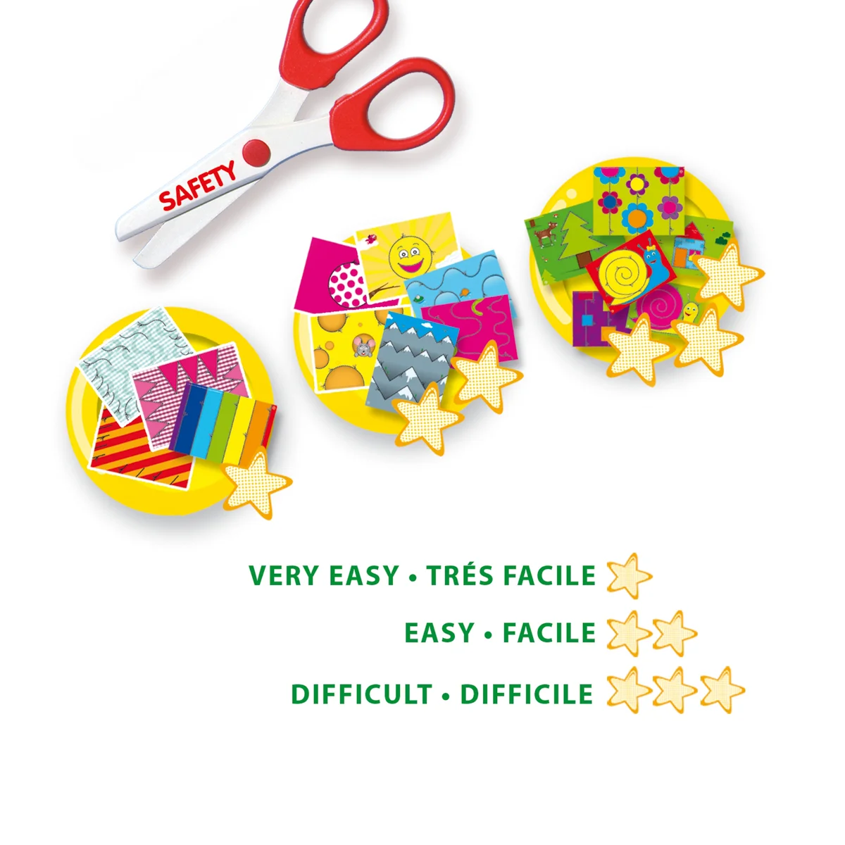 Jak se naučit bezpečně stříhat, tak ostrými nůžkami? Se speciálními nůžkami to půjde snadno. Nůžky stříhají pouze papír – oblečení a vlasy tak zůstanou v bezpečí. Díky 48 veselým předtištěným listům budou mít děti dostatek materiálu k postupnému procvičování a učení se stříhat. Naučí se, jak krok za krokem stříhat zábavným a bezpečným způsobem se spoustou zábavných úkolů na střihání. Sada stimuluje kreativitu a rozvíjí jemnou motoriku. Obsah sady: bezpečnostní nůžky, 48 vystřihovacích listů. Baleno v krabičce. Rozměry balení: 20 x 30 x 4 cm. Věk: 3+